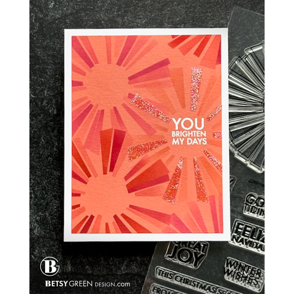 A wide assortment of stacked sentiments complements the design, making it easy to create everything from cheerful cards to elegant tags.