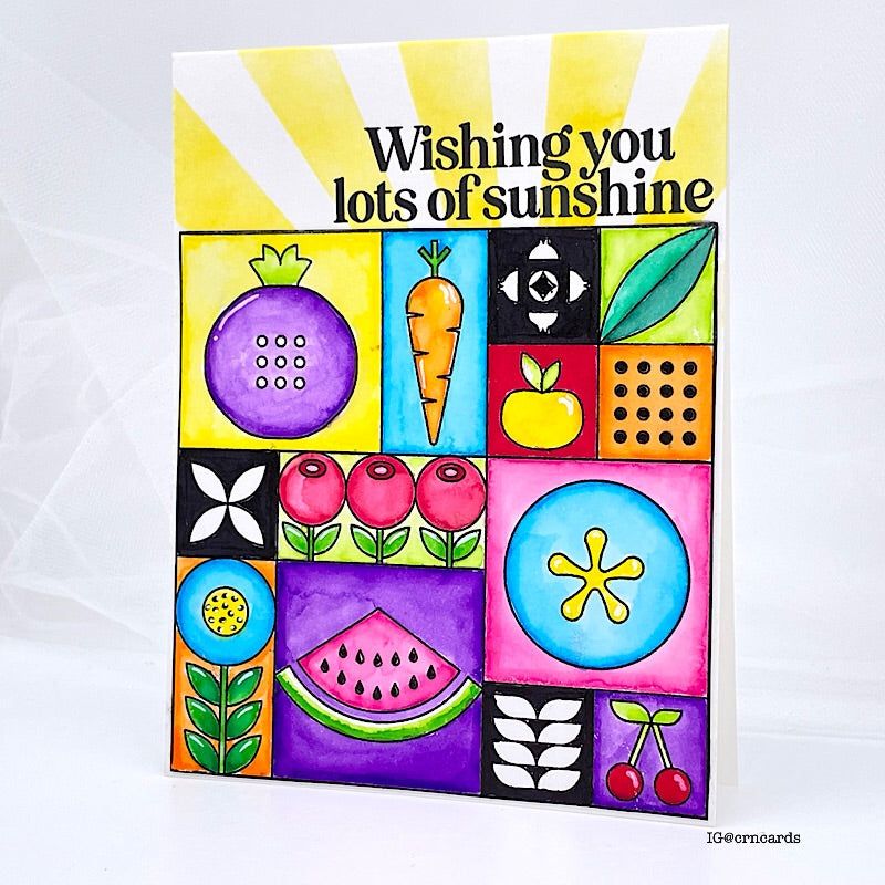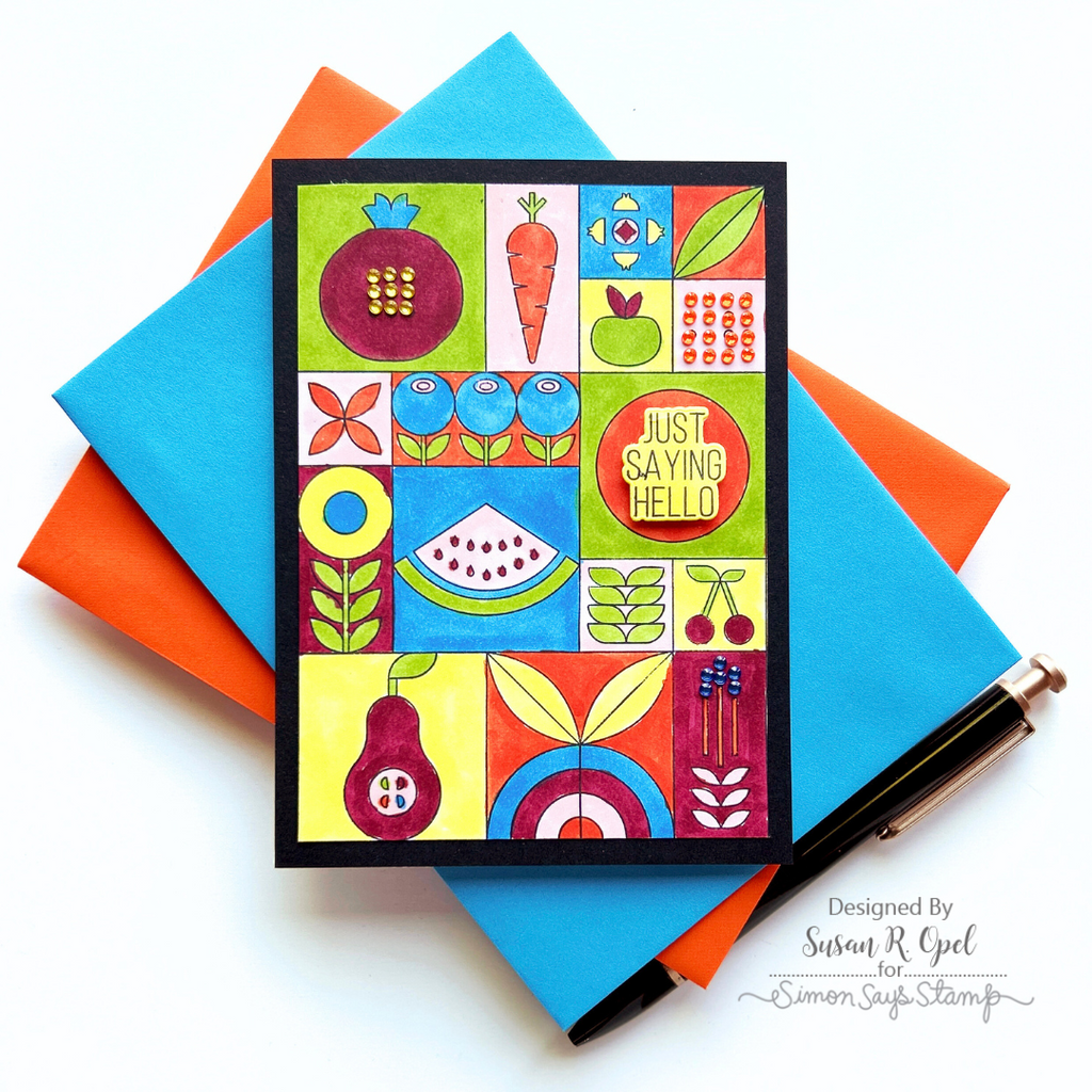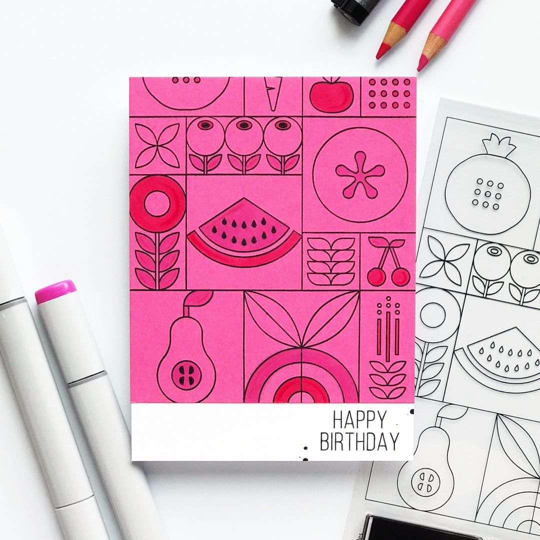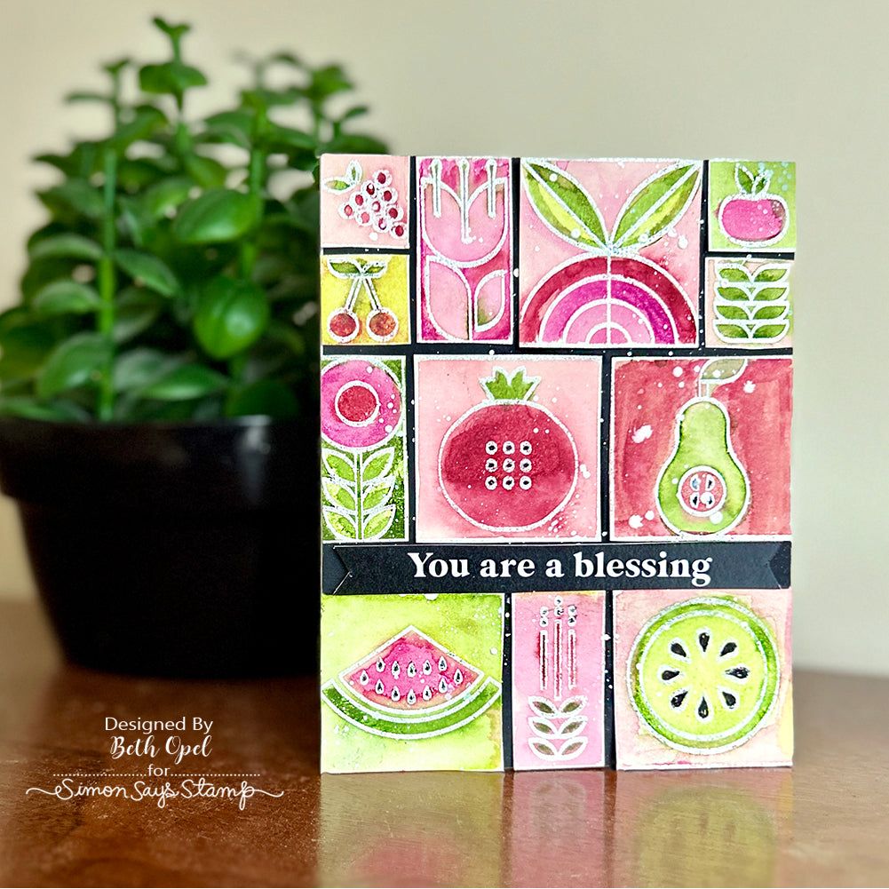 Introducing the Simon Says Stamp Summer Fruit Tiles stamp set! Delight in a vibrant array of modern, stylized fruit, vegetable, and floral images, arranged in a large grid for easy crafting.