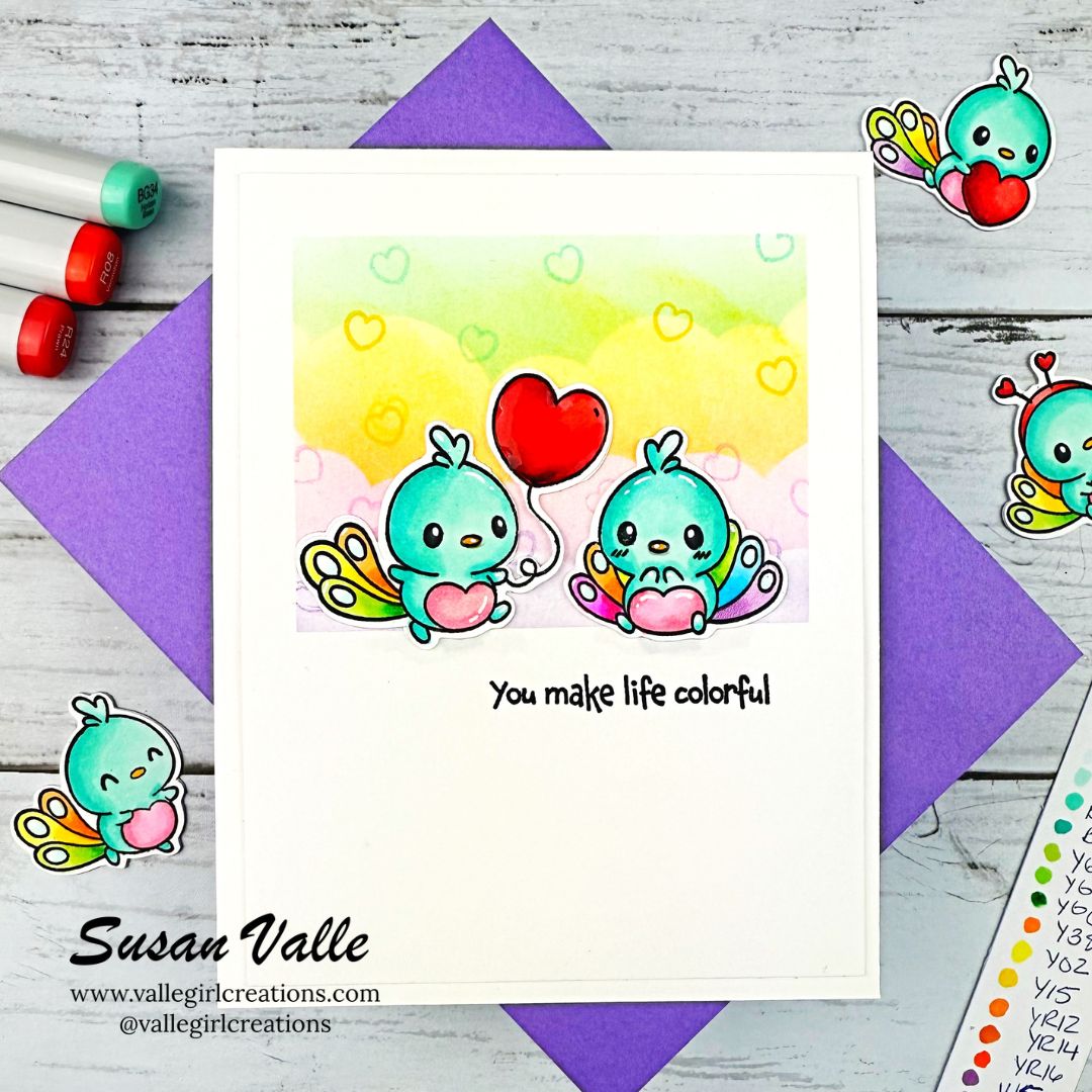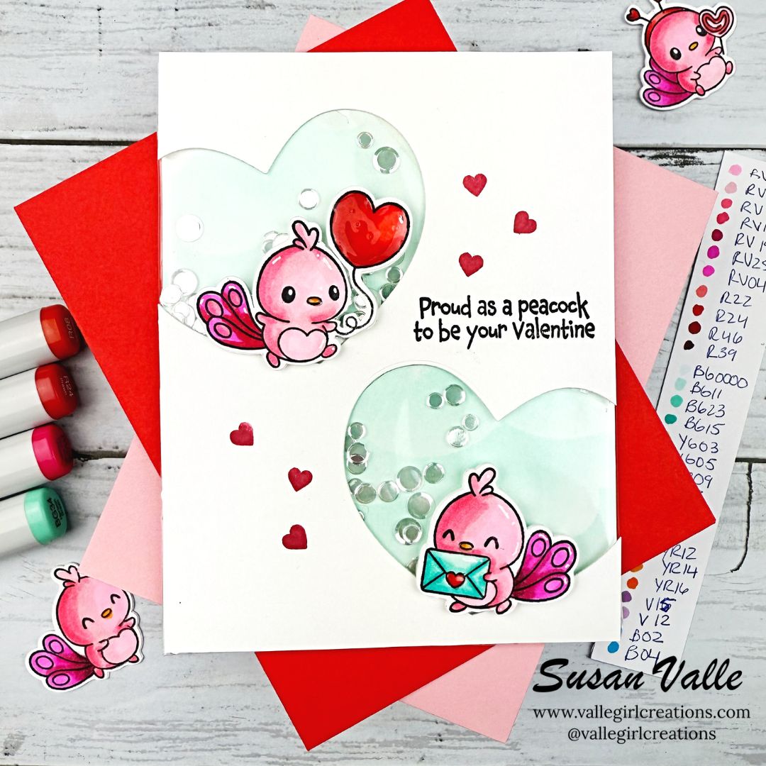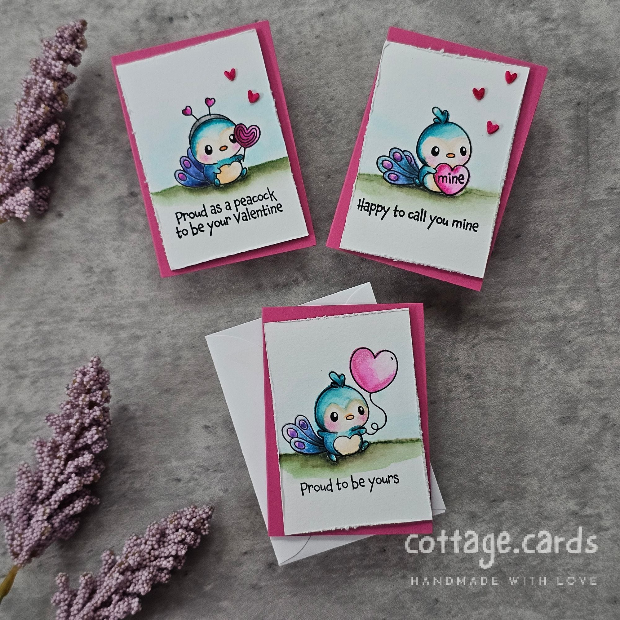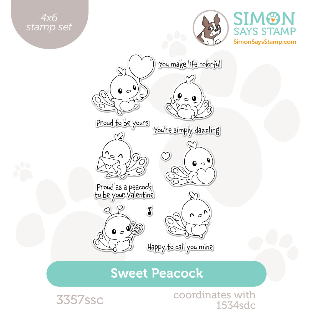 The Simon Says Stamp Sweet Peacock stamp set features chubby baby peacocks in darling, playful poses perfect for Valentine’s Day and beyond. These sweet characters are shown holding charming accessories like a heart balloon, a valentine, a heart, or a heart-shaped lollipop, making them ideal for love-themed cards while still feeling versatile enough for everyday projects.