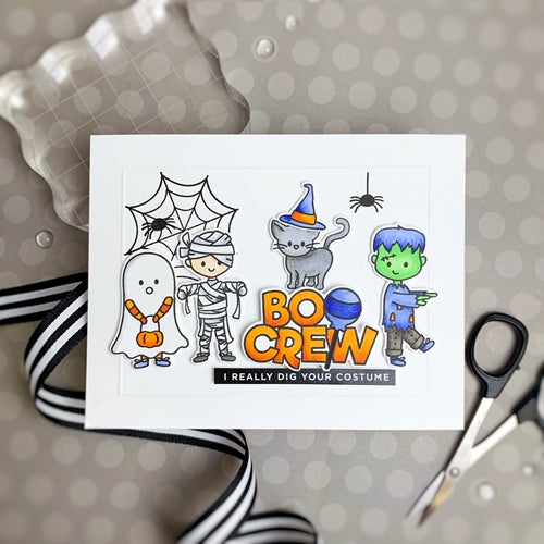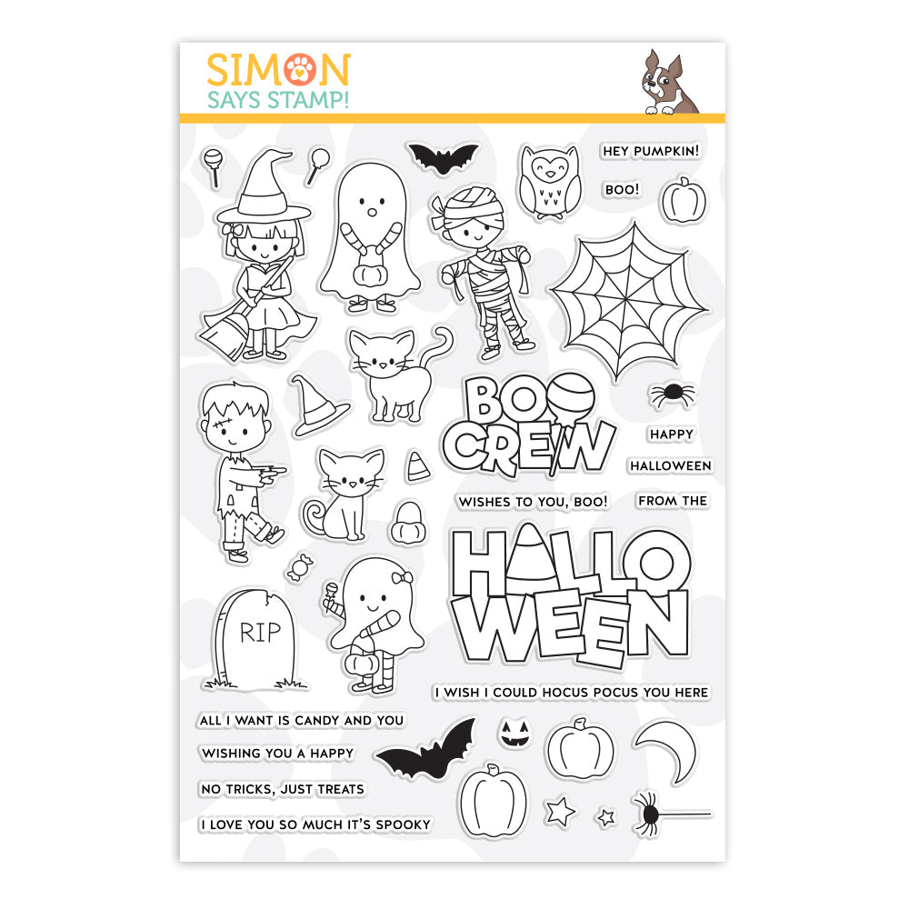 Simon Says Stamp clear stamps are high quality photopolymer and made in the USA. This stamp set measures approximately 6 x 8 inches and coordinates beautifully with the Boo Crew die set (sssd112176c).