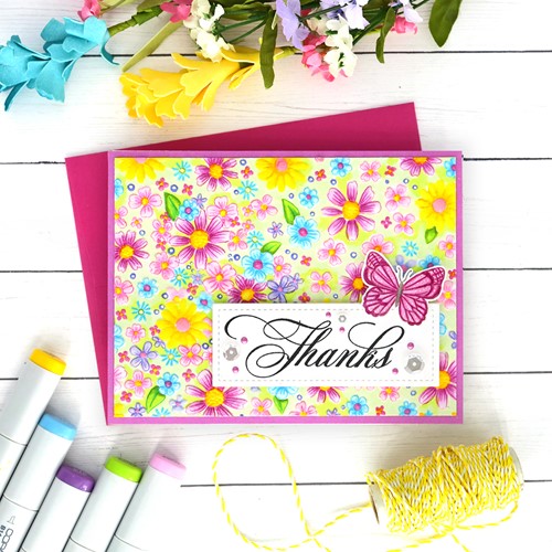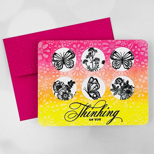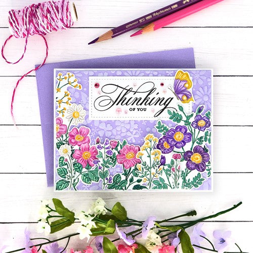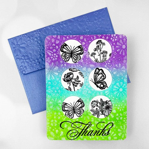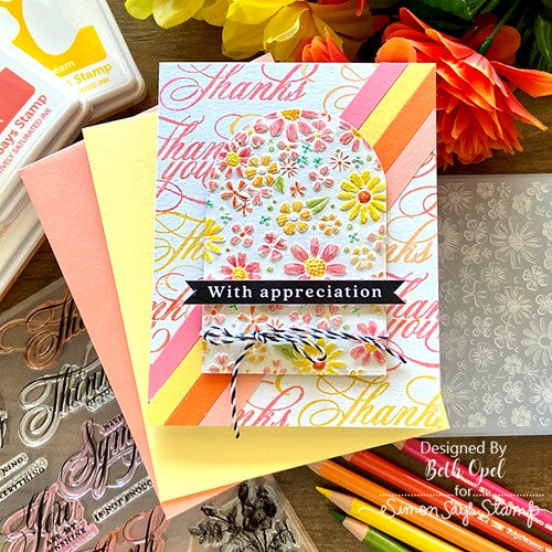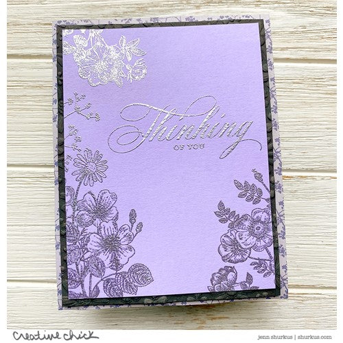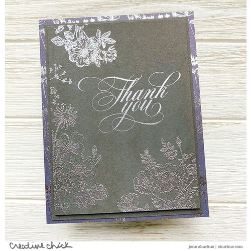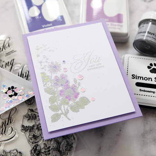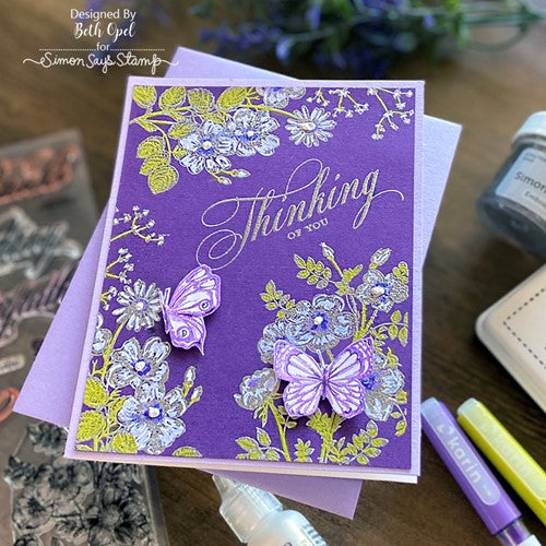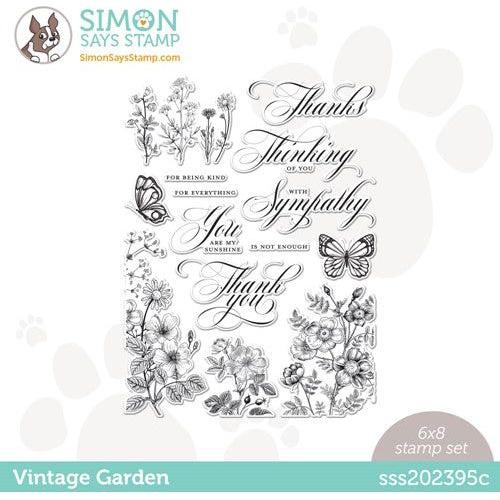 Simon Says Stamp clear stamps are high quality photopolymer and made in the USA. This stamp set measures approximately 6 x 8 inches and has two coordinating die sets, Vintage Garden Words (sssd112609c) and Vintage Garden Stems (sssd112610c).