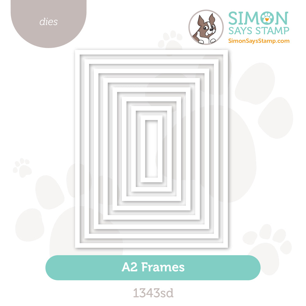 The Simon Says Stamp A2 Frames dies include 8 nested rectangle frames, each with a slim 0.125-inch width. Ranging in size from a full A2 card front (4.25 x 5.5 inches) down to 0.625 x 0.875 inches, these versatile dies are perfect for creating clean, layered designs.