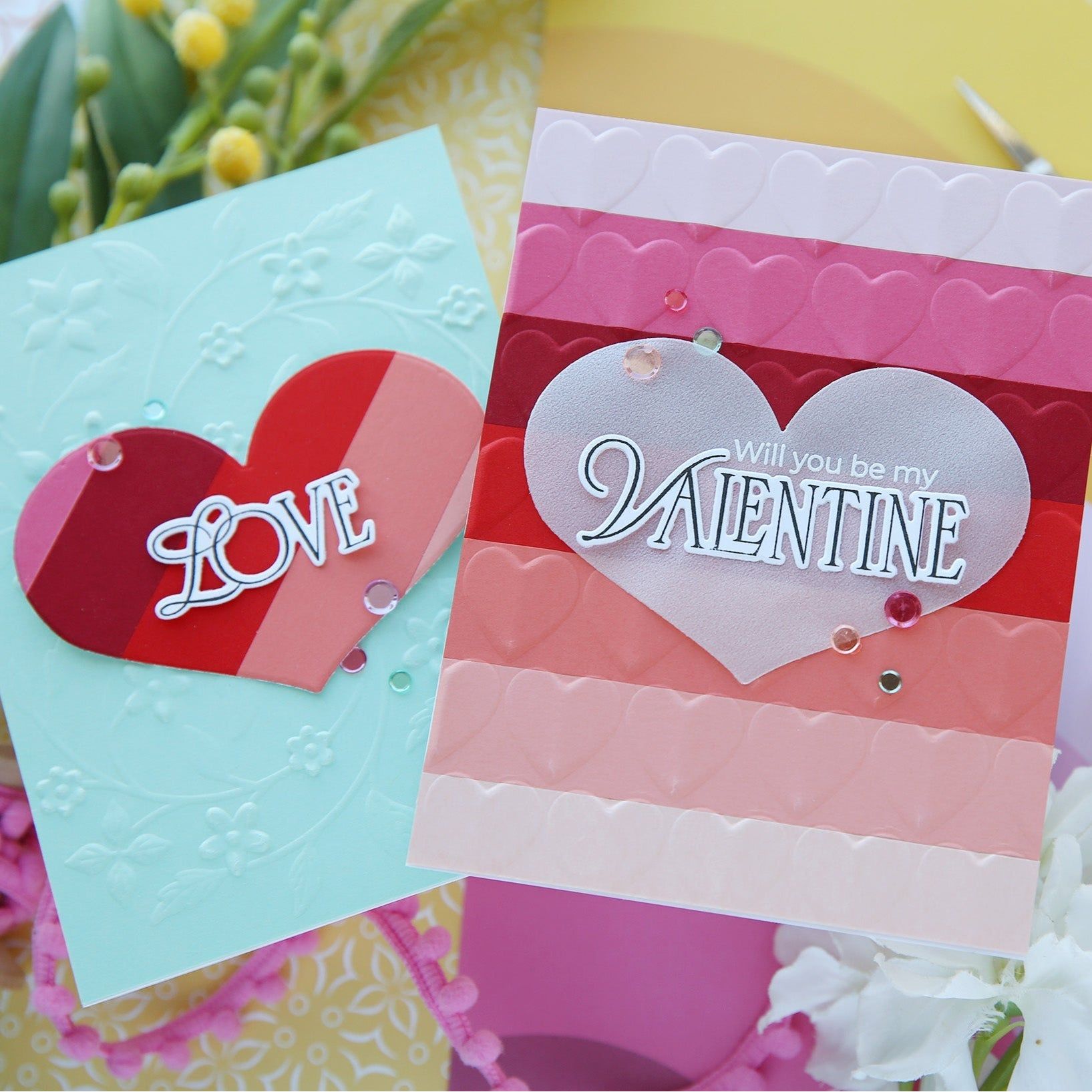 The Always and Forever Companions dies are a must-have addition for enhancing the beauty of your romantic crafting projects. This set includes dies to cut out the large floral heart image, a stunning scalloped heart outline for added dimension, and the graceful larger bird carrying a heart in its beak.