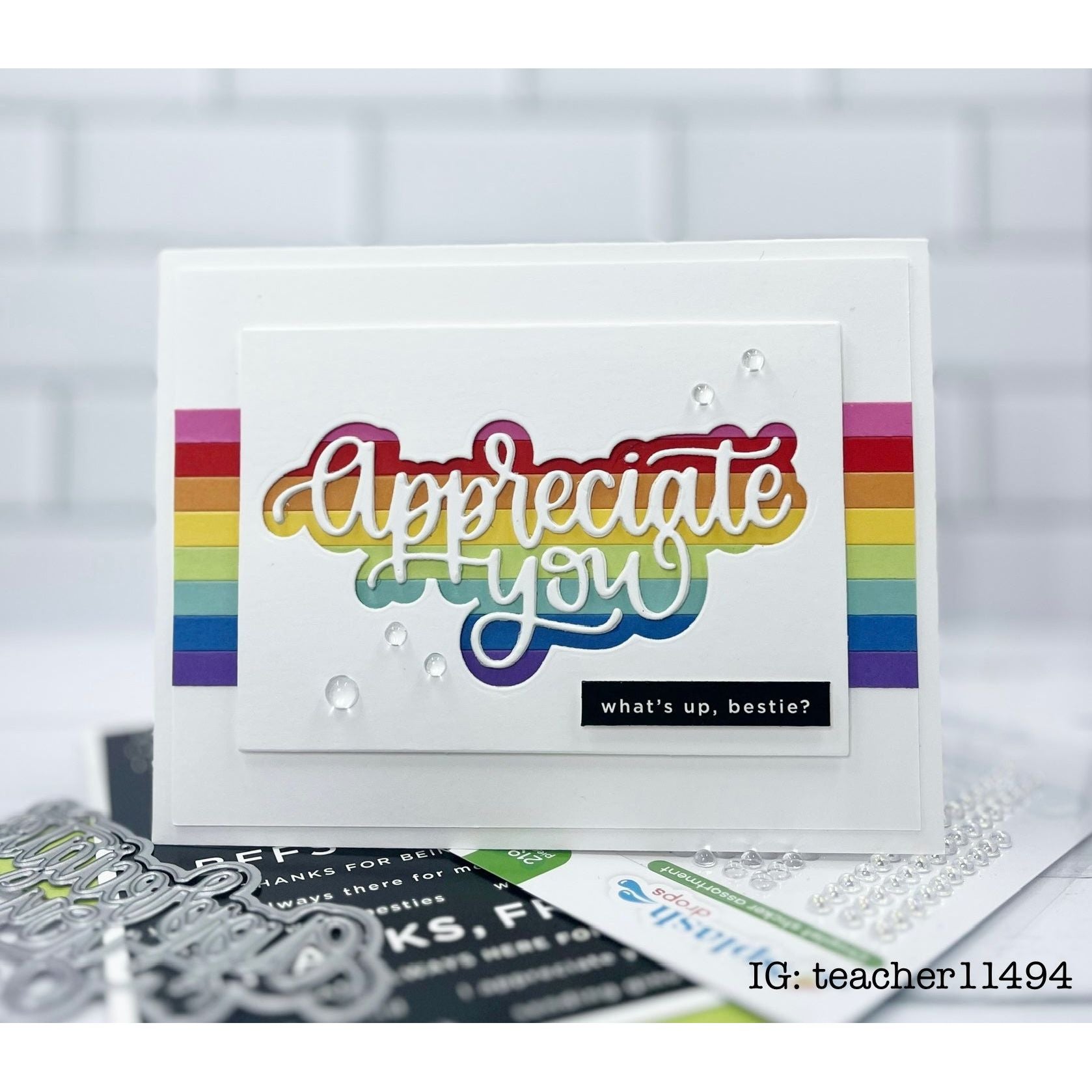 Elevate your heartfelt sentiments with the Simon Says Stamp Appreciate You dies. Crafted in a flourishy handwriting font, this set includes dies for both the sentiment and its outline, adding elegance and dimension to your projects.