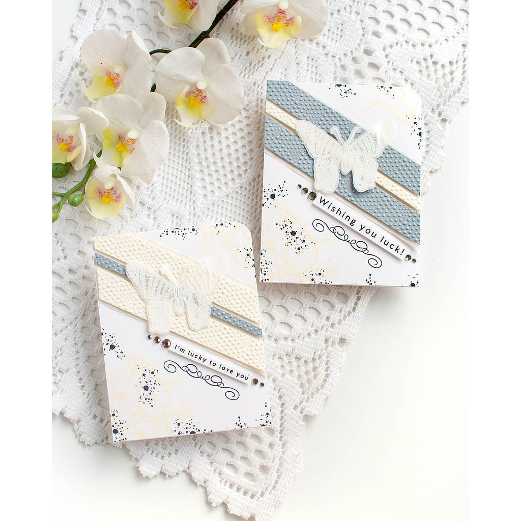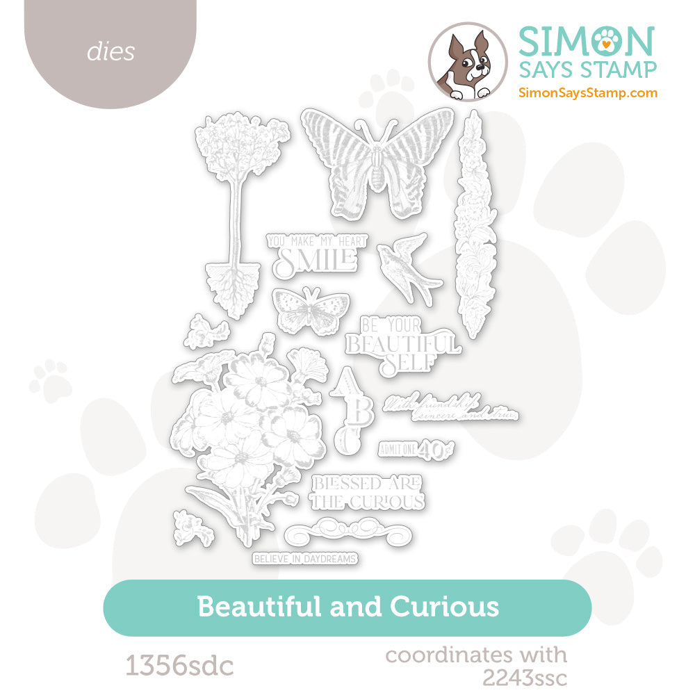 The Simon Says Stamp Beautiful and Curious dies are designed to coordinate perfectly with the Beautiful and Curious stamp set, giving you crisp, clean cuts of all the detailed images and sentiments. This versatile die set includes outlines for the vintage-style flowers, butterflies, birds, postmarks, leafy swag, and script elements, making it easy to add dimension and movement to your mixed media projects, cards, and journals.