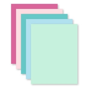 Simon Says Stamp Cardstock 100 lb Sweet Treats includes 10 sheets of 8.5 x 11 inch 100 lb premium cardstock in 5 different colors. You'll receive 2 sheets each of Cotton Candy, Doll Pink, Mint, Audrey Blue and Surf Blue. Its heavy weight and smooth texture make it perfect for cardbases, scrapbooking, or any other papercrafting adventures that require a sturdy build. With a solid color core, our high-quality cardstock is ideal for stamping, embossing, and cutting. Whether you're making a colorful invitation or celebrating a fun birthday, these staple colors will serve you well.