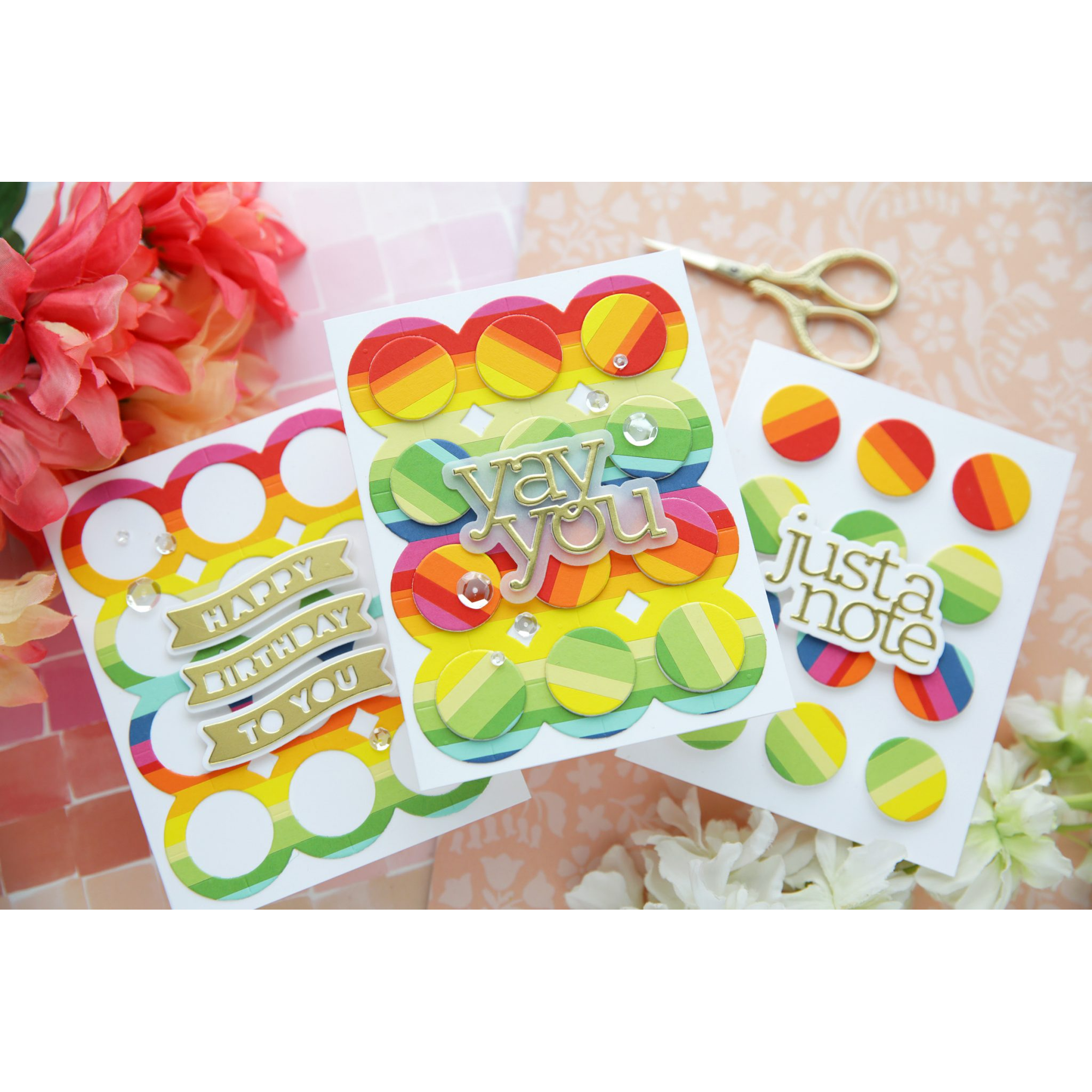 Also included are two additional dies featuring 3-circle rows with cutouts, giving you the flexibility to layer, mix, and arrange patterns in endless ways. Whether you use the full panel for quick, modern backdrops or combine the strip dies for custom layouts, the Circle Quilt dies bring clean lines and dynamic style to cards, tags, and mixed media projects.
