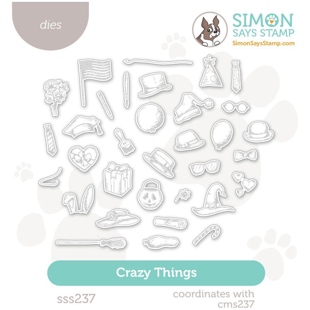 This die set includes the dies to cut out 33 accessories. The heart box measures approximately 1.25 inches by 1.25 inches. Works beautifully with the Tim Holtz CMS237 Crazy Things stamp set.