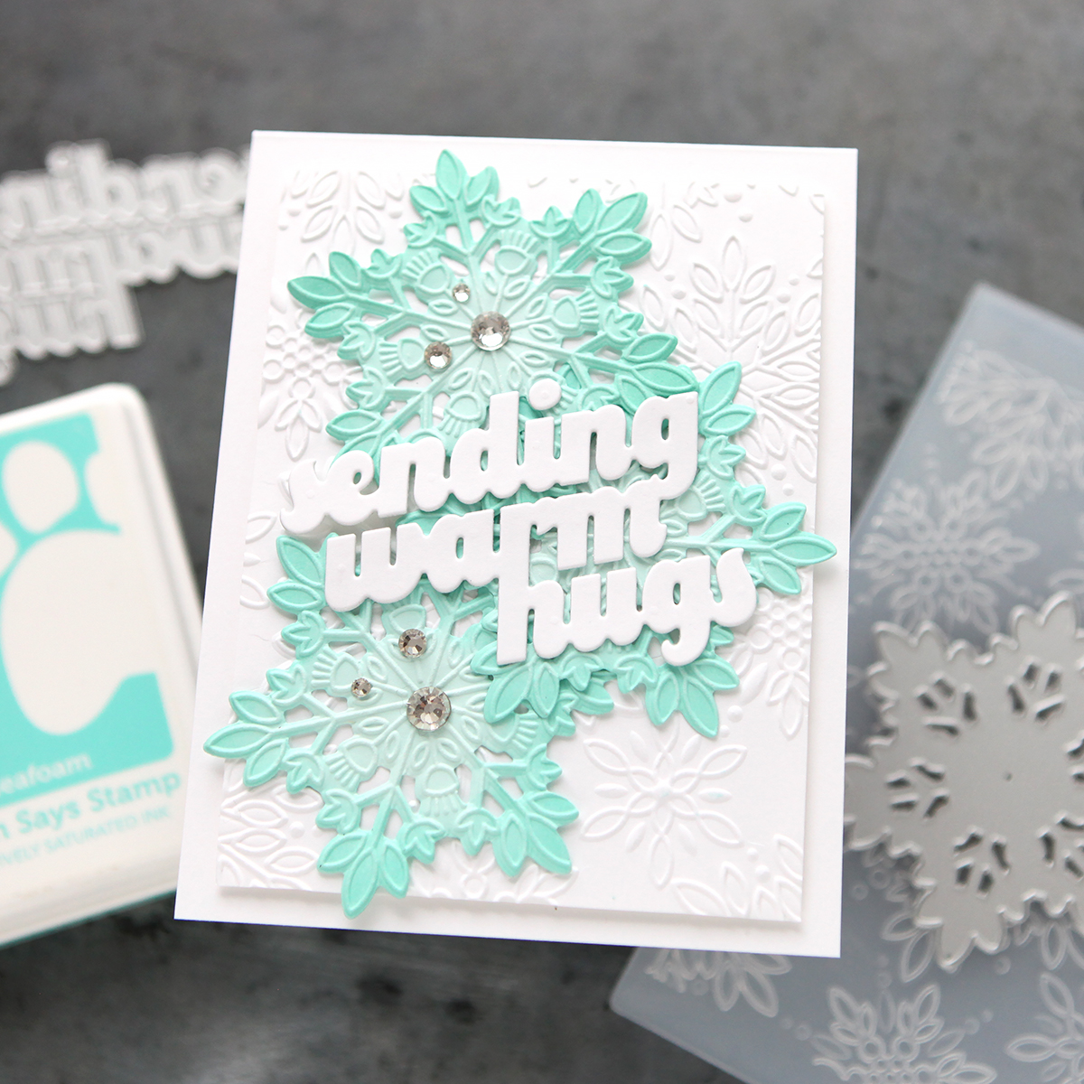 The Dazzle Snowflakes embossing folder and cutting die set creates a beautifully textured background filled with lacy snowflakes in various sizes. The embossing folder delivers intricate, frosty detail across your entire panel, while the included die cuts out the largest snowflake for layered, dimensional accents. (We recommend die cutting first to avoid flattening the embossing.)