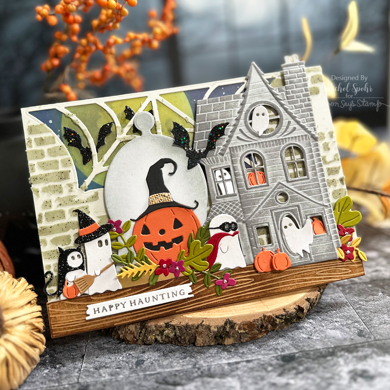 The Simon Says Stamp Halloween House embossing folder and dies set creates an eerie and detailed impression of a large Gothic house, perfect for adding spooky charm to your Halloween-themed projects. The wafer dies perfectly cut out the detailed Gothic house, adding dimension to your spooky projects. (We recommend die-cutting first to avoid flattening the embossing.) The set also includes small pumpkin and ghost dies, perfect for layering and adding extra Halloween charm to your cards and crafts.