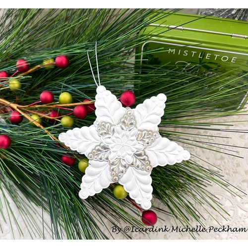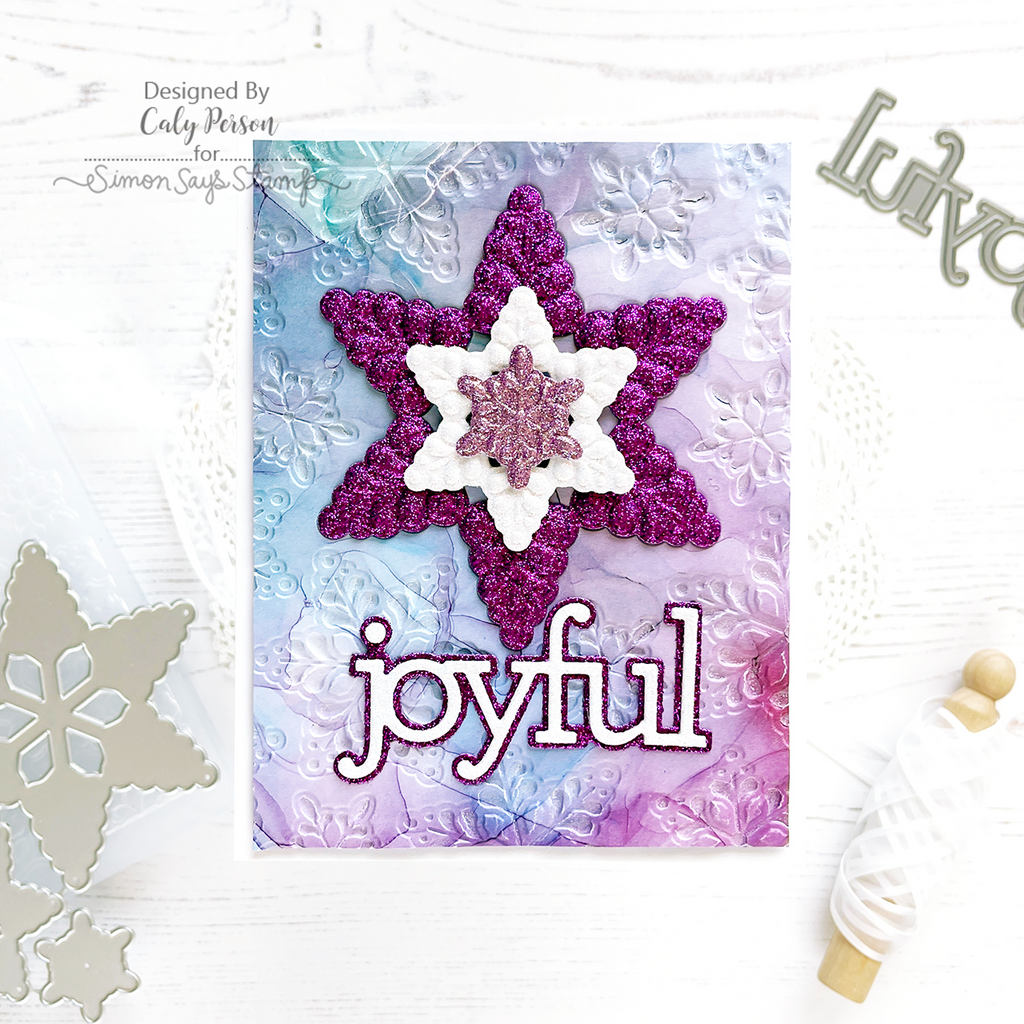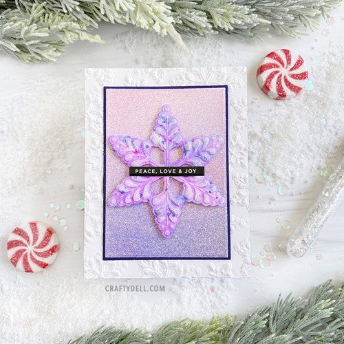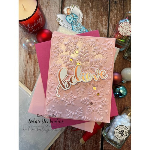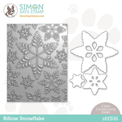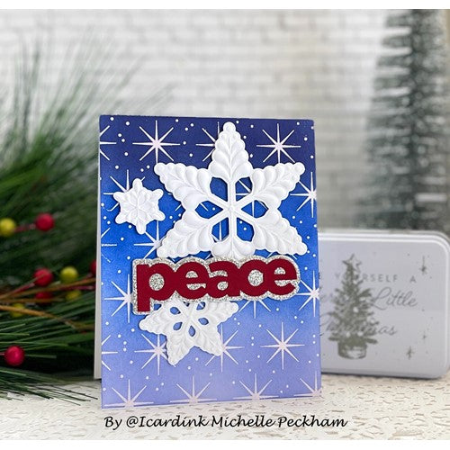 This embossing folder creates a beautiful, dimensional snow scene! The folder also comes with coordinating dies to allow you to cut out three of the snowflake images and then emboss them, too!
