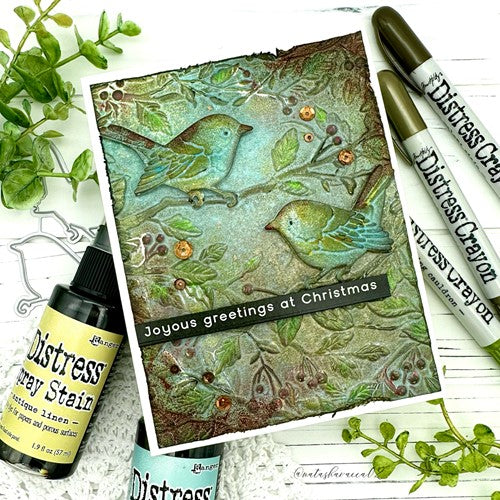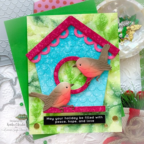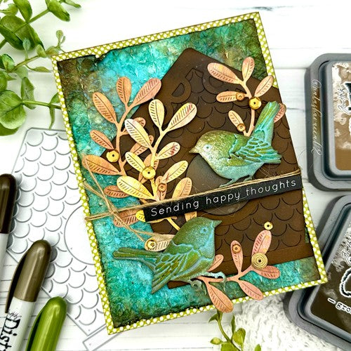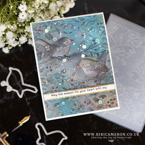 Two happy birdies are perched amongst the branches of this gorgeous embossing folder. The folder also comes with coordinating dies to allow you to cut out the two bird images and then emboss them, too!