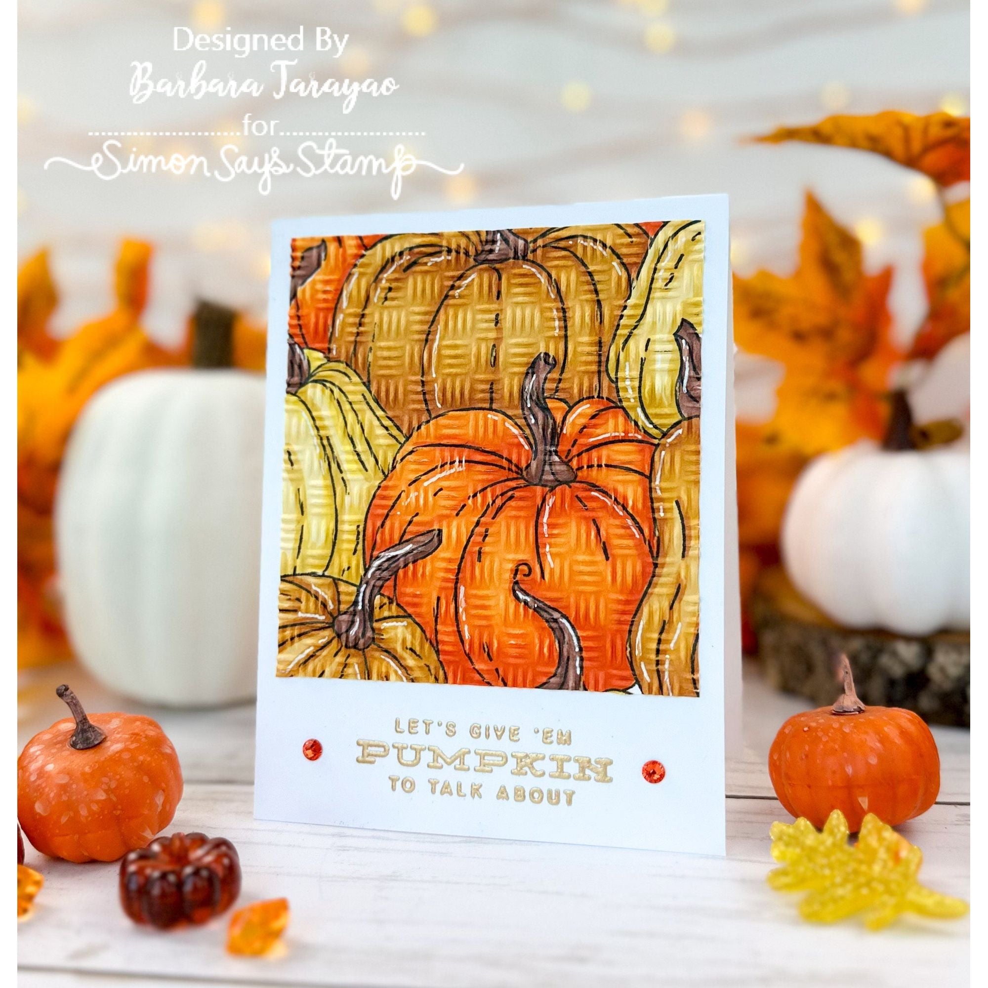 The Simon Says Stamp Basket Weave embossing folder creates a textured background that mimics the look of a woven basket.