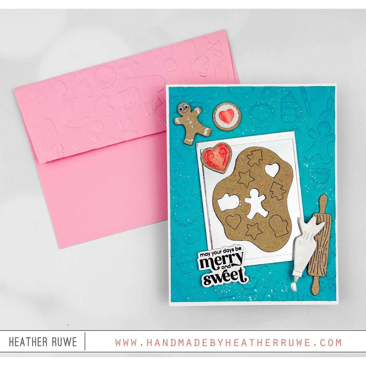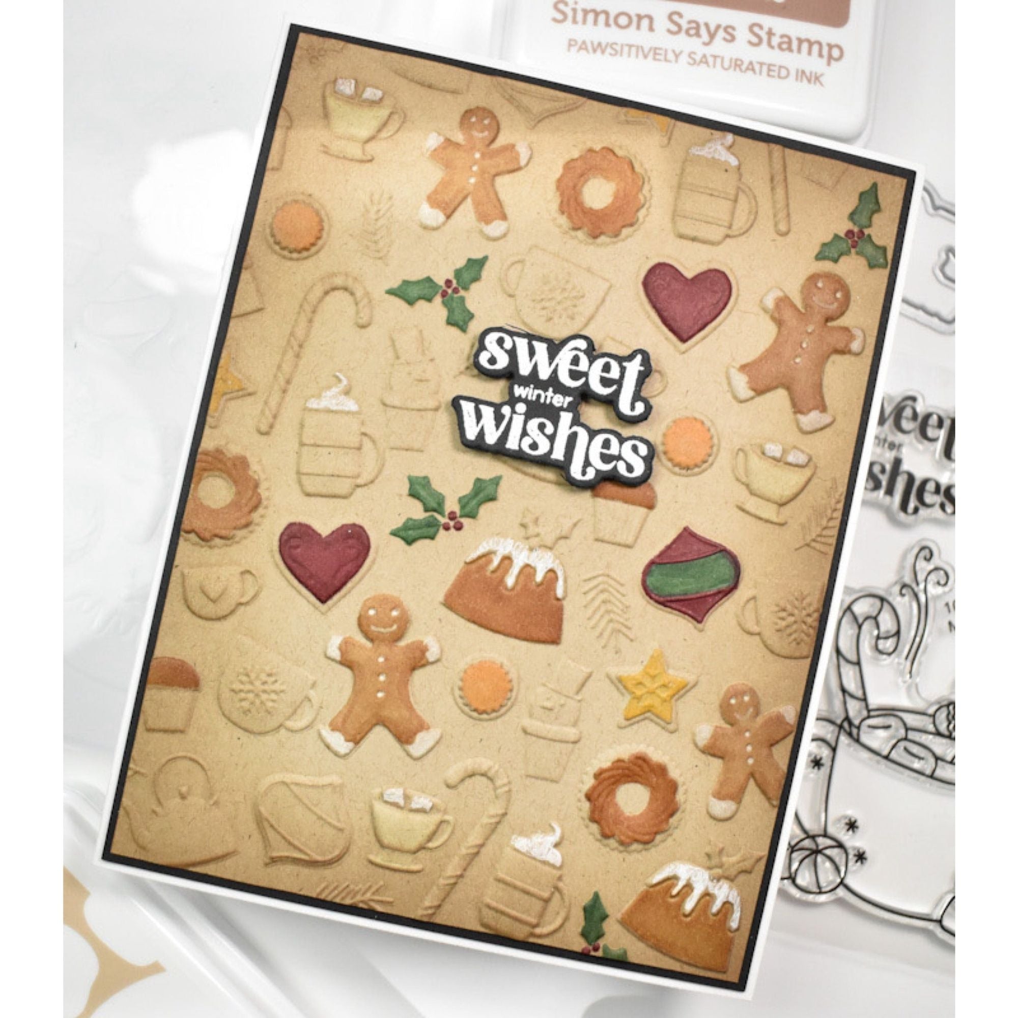 The Simon Says Stamp Christmas Sweets and Treats embossing folder adds a festive background of holiday goodies and seasonal icons to your crafting projects. Featuring delightful details like Christmas cookies, cozy mugs, candy canes, greenery, and more, this embossing folder is perfect for creating textured, eye-catching designs.