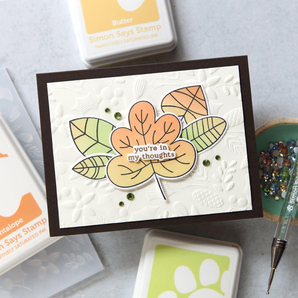 The Simon Says Stamp Fluted Forest Decor embossing folder creates a beautifully detailed panel featuring an all-over design of pinecones, leaves, branches, and flowers.