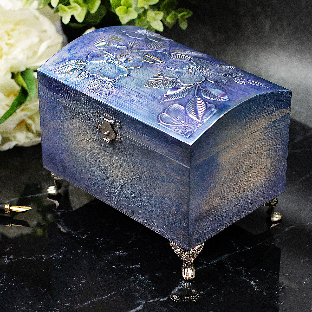 - Embosses a design of impressive flowers.