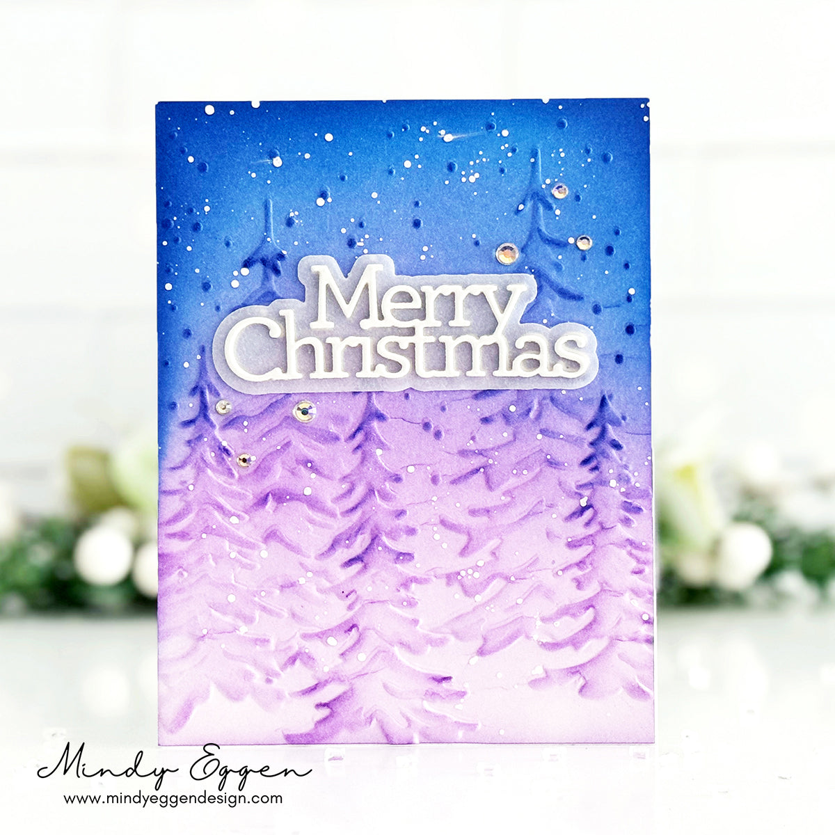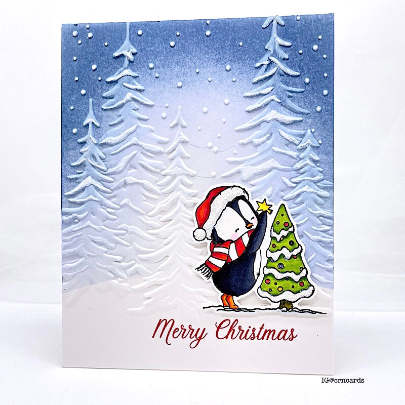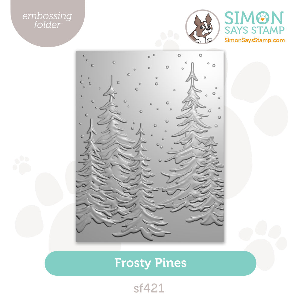 The Simon Says Stamp Frosty Pines embossing folder creates a stunning panel featuring snow-laden evergreens beneath a softly falling snowy sky. This intricate design adds a peaceful, wintry charm to your holiday and seasonal crafting projects, making it perfect for cards, scrapbooks, and winter decor.