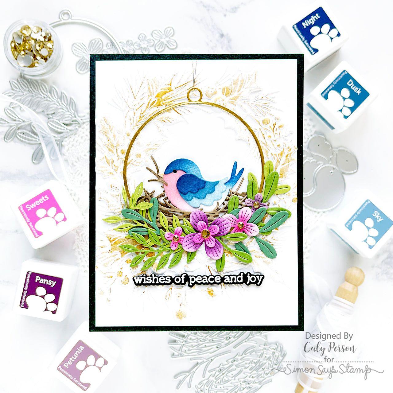 The Simon Says Stamp Holly Wreath embossing folder creates a beautifully detailed panel featuring a large holiday wreath made of pine leaves, holly, and berries. This intricate design adds a festive and dimensional touch to your holiday cards, tags, and seasonal decor.