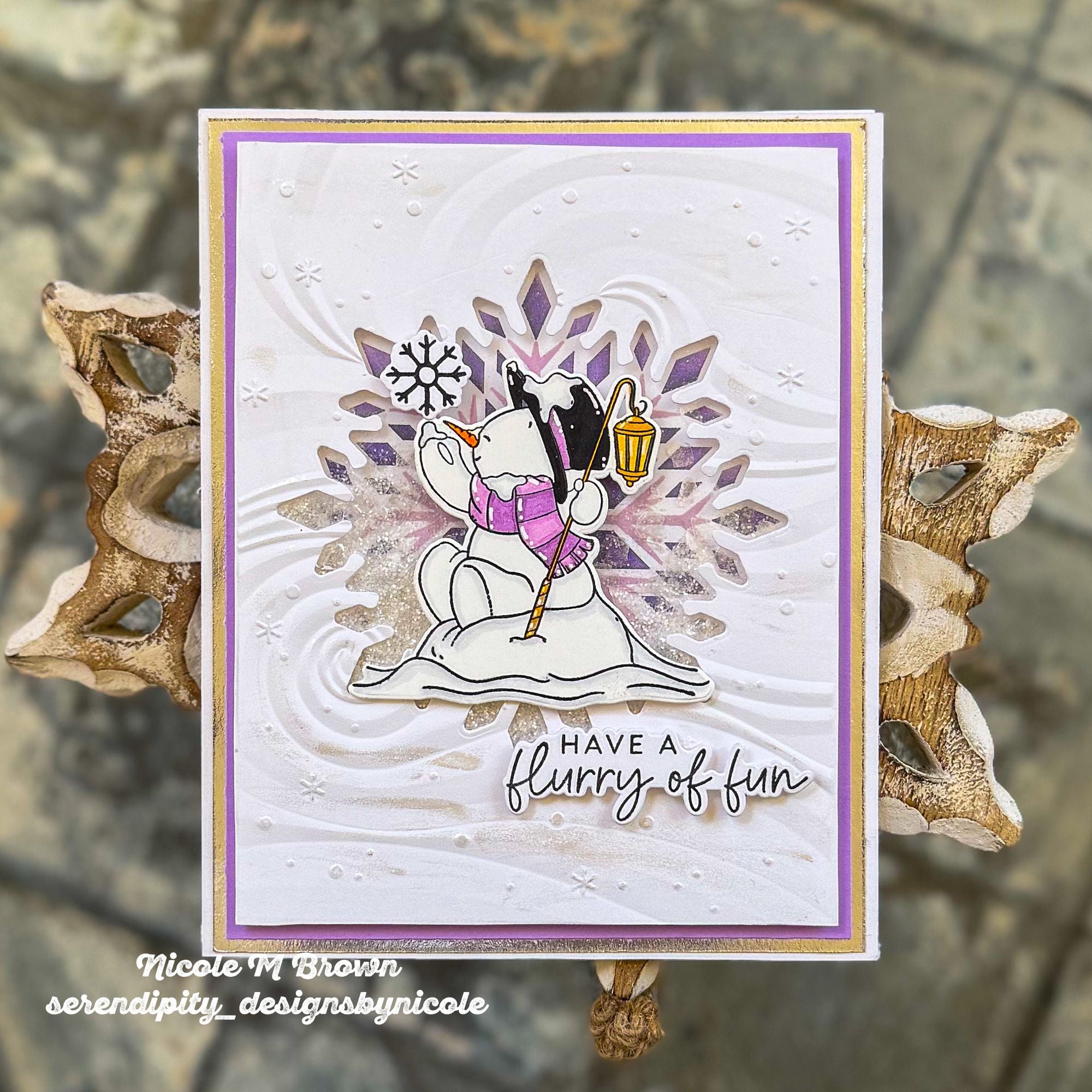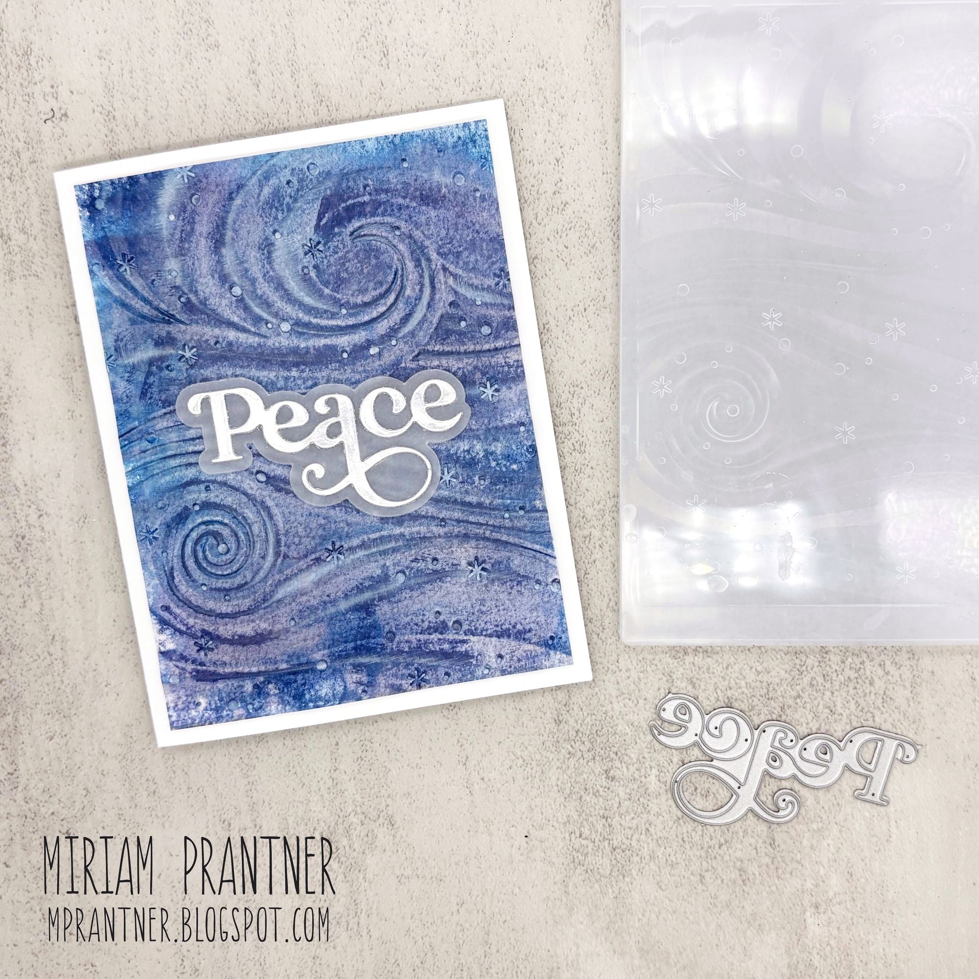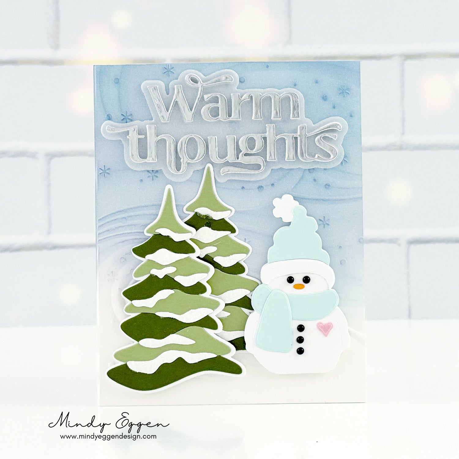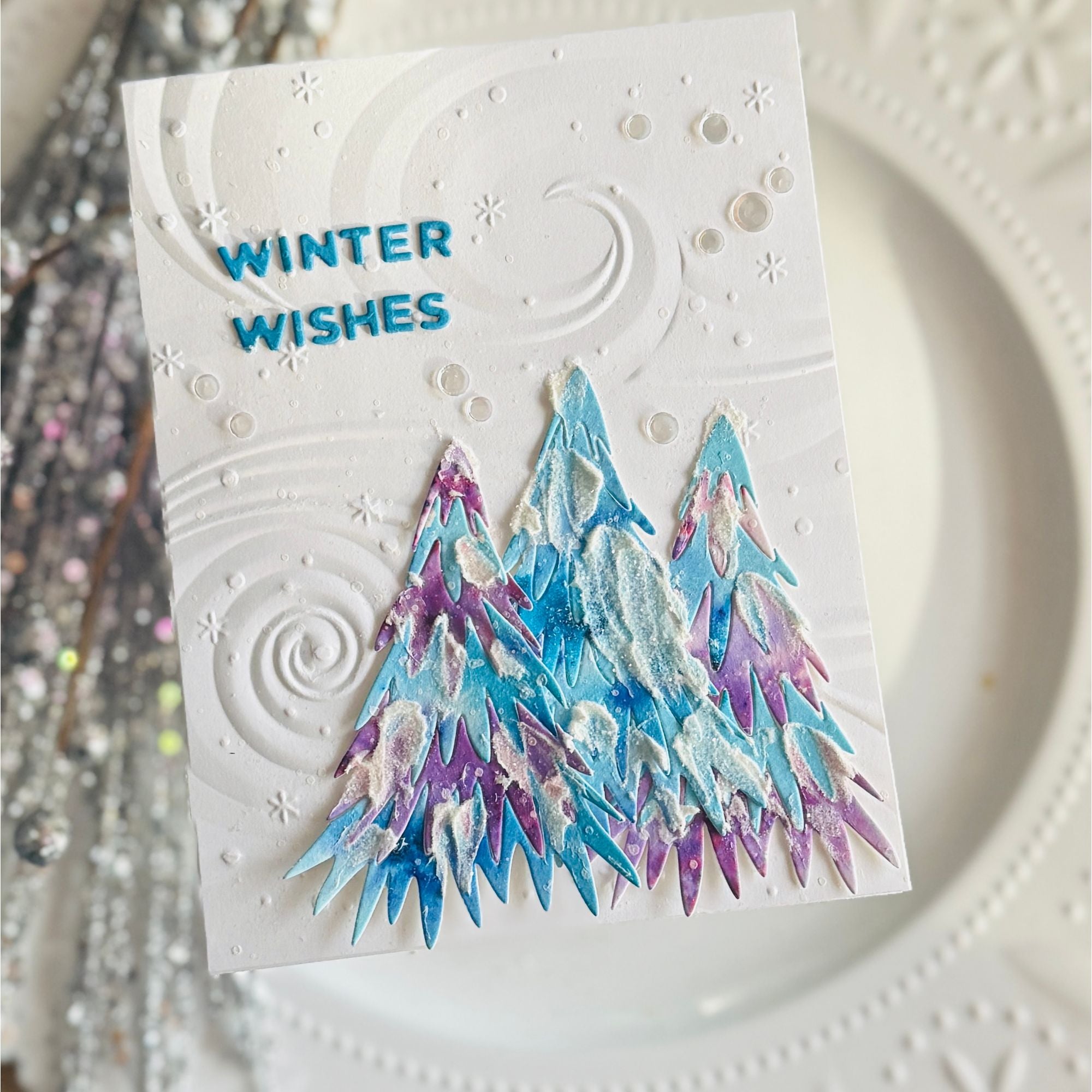 - Embosses a wavy, snowy background.