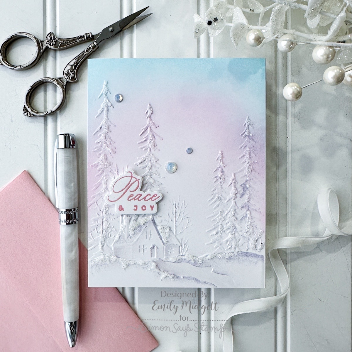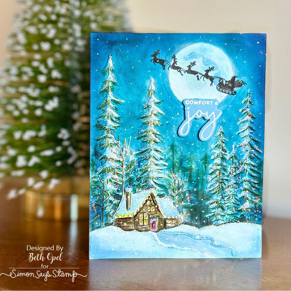 The Simon Says Stamp Wooded Cabin embossing folder creates a beautifully textured panel featuring a serene log cabin nestled in snowy woods, surrounded by pine trees. This detailed design brings the peaceful charm of a winter forest to your holiday and winter-themed projects, adding depth and dimension to your cards, scrapbooks, and home decor.