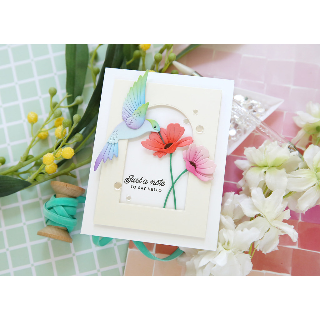 - Includes wafer-thin dies that cut out various pieces to create a layered hummingbird.