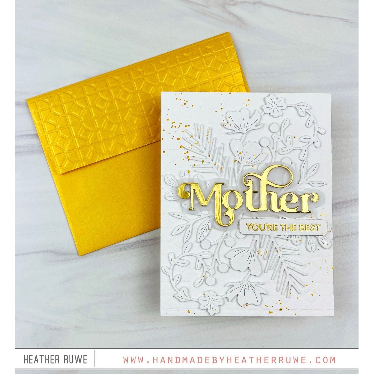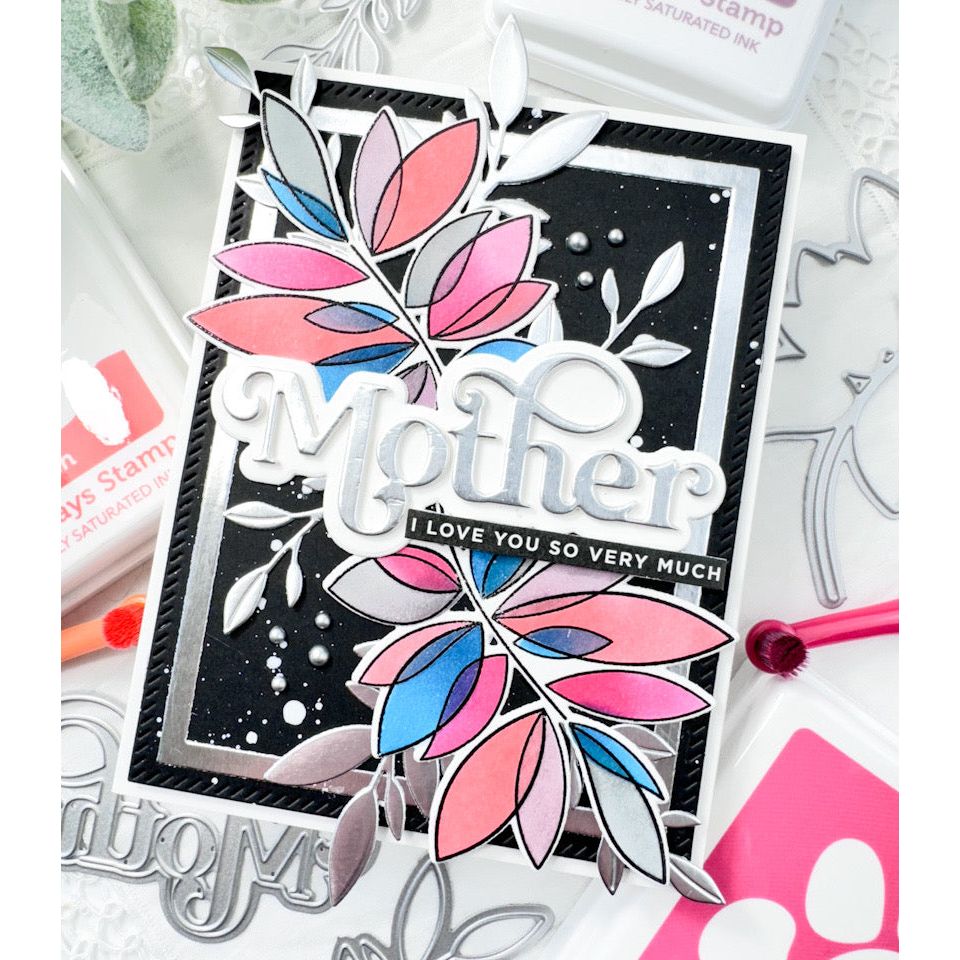 Add a touch of elegance to your Mother-themed projects with the Simon Says Stamp Fancy Mother dies. This set features dies to cut out the word "Mother" in a beautiful flourishy font, along with its outline for added dimension and style.