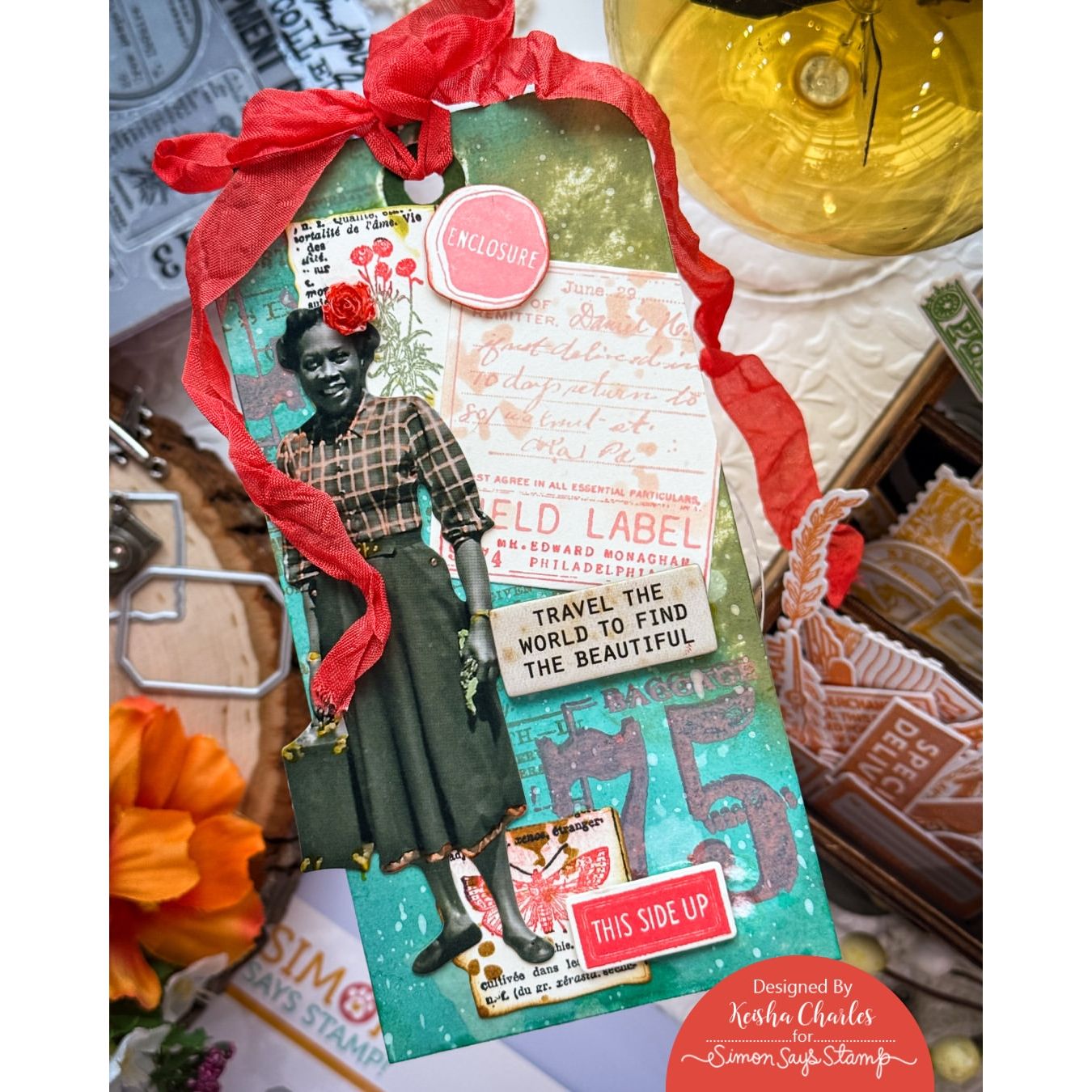 This die set includes the dies to cut out 13 journal labels. The largest die measures approximately 2 inches wide by 2.25 inches tall. The smallest die measures approximately 0.875 inches wide by 0.5 inches tall. Works beautifully with the Tim Holtz CMS396 Field Notes stamp set.
