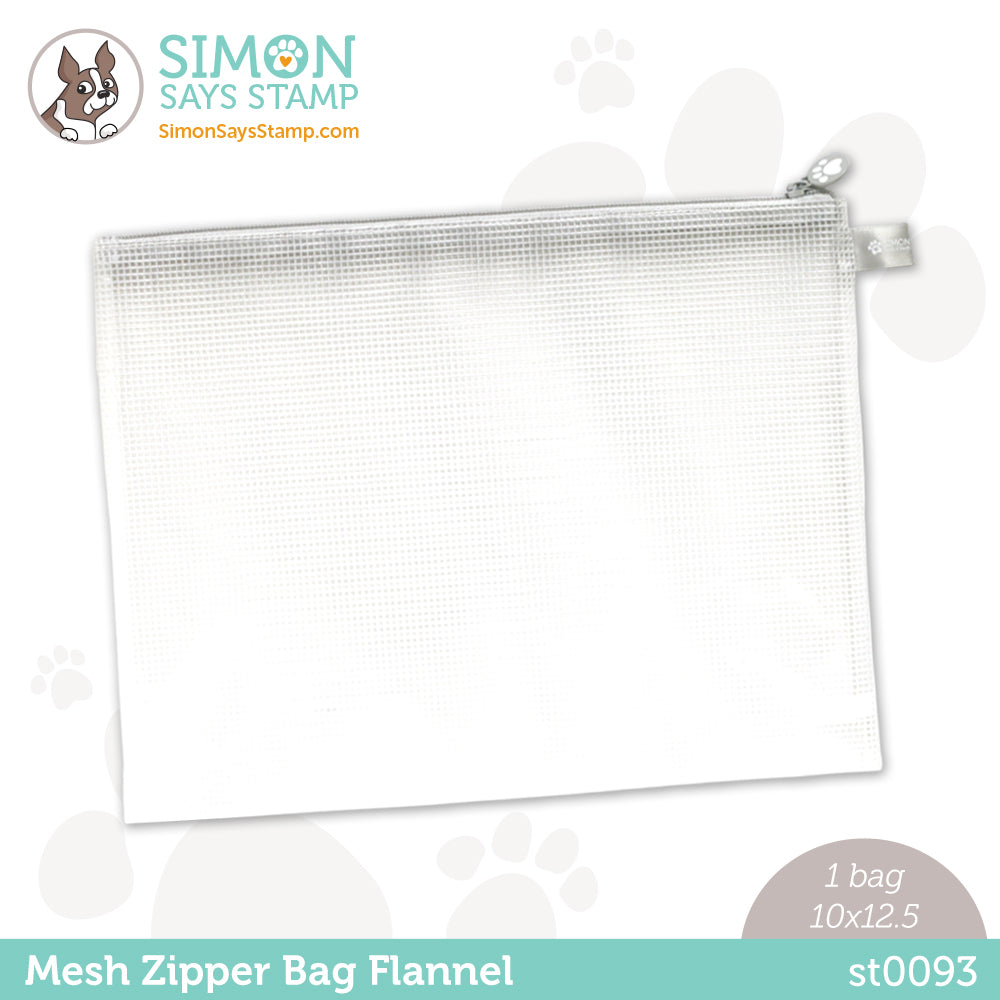 Our Simon Says Stamp Mesh Bags are a pawsitively perfect storage solution for all your crafty supplies! The large 10 x 12.5 inch size allows for full-sized 8.5 x 11 inch paper sheets to fit inside. The flexible makeup of this bag also gives room for bulkier items such as jars or tools. The mesh material has a slick coating, which makes for easy clean-up if you put inky brushes into it. Not just for your craft room, our Mesh Bags are even great for traveling; place your favorite supplies inside and carry them with you for on-the-go crafty time!