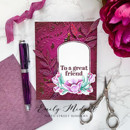 Simon Says Stamp dies are made of 100% durable steel and usable in nearly every machine on the market. Use wafer dies on cardstock, felt, fabric, even shrink plastic! You can use wafer thin dies to cut, stencil, emboss and create! This die measures approximately 4.5 x 6.5 inches and coordinates with the Floral Frames stamp set (sss202525c).