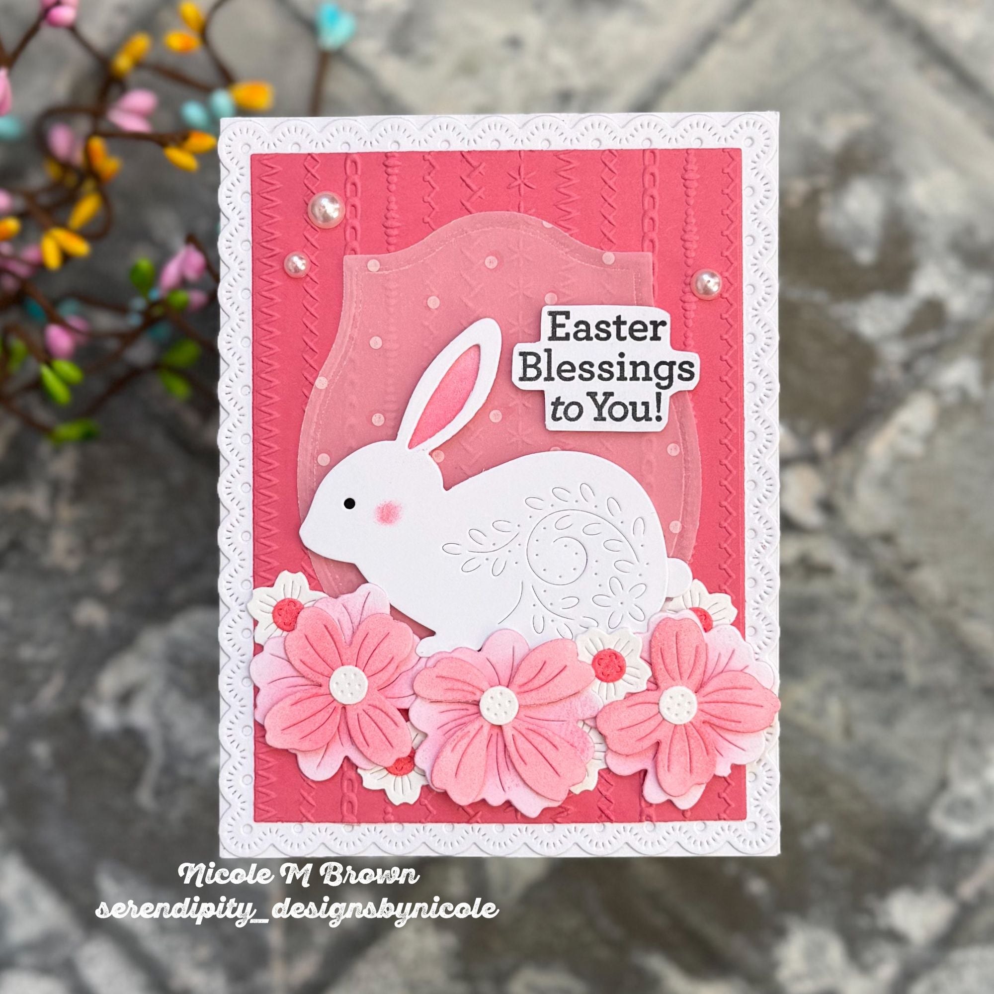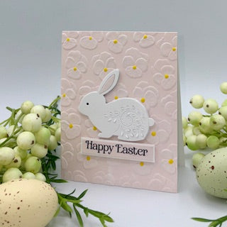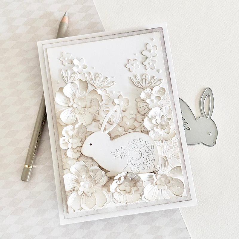 Perfect for spring and Easter cards, tags, and scrapbook pages, this die set creates a beautiful focal element with a graceful, handcrafted feel. Use a mix of cardstock colors and finishes to highlight the etched details and bring your bunny to life.