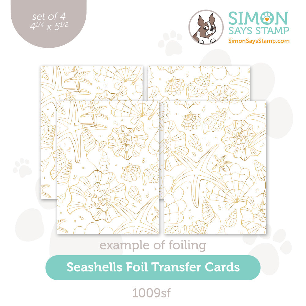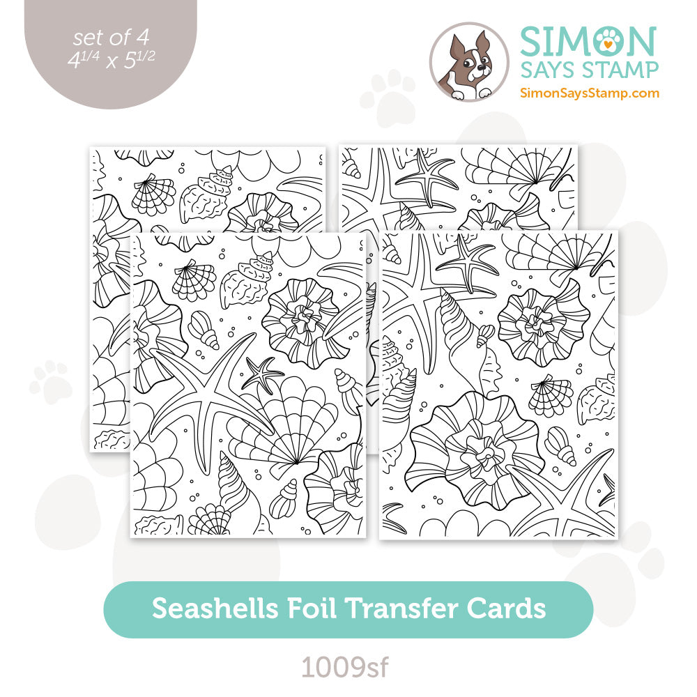Transform your creations into seaside treasures with Simon Says Stamp Seashells foil transfer cards. Printed with toner, these cards showcase a background panel of illustrations of seashells.
