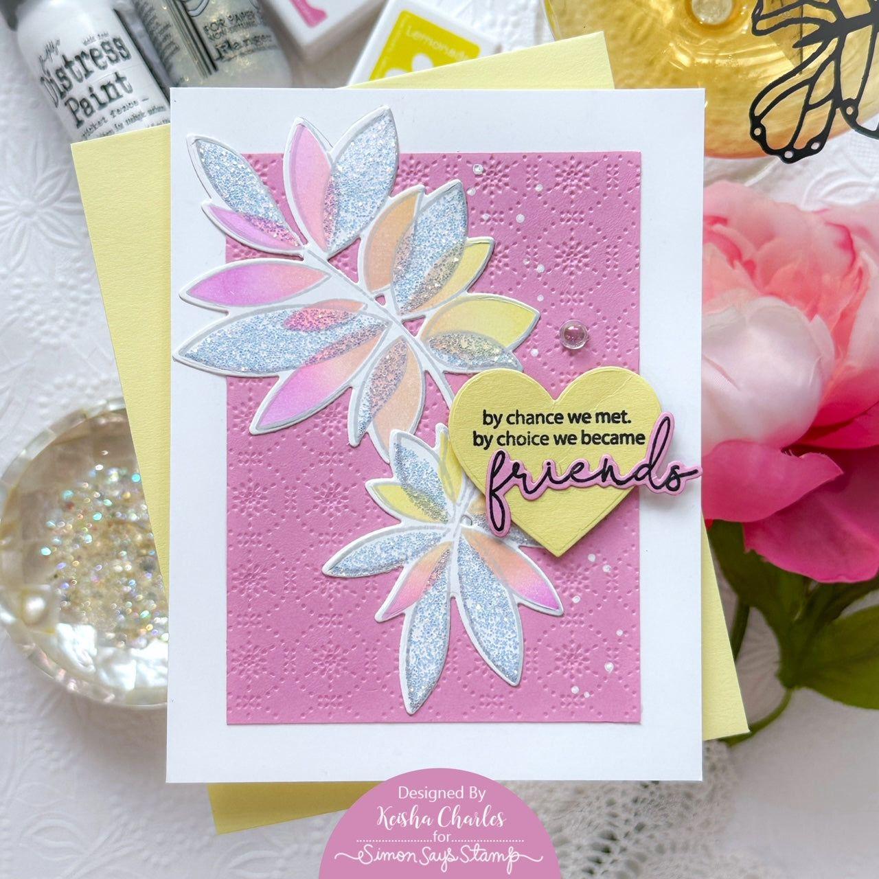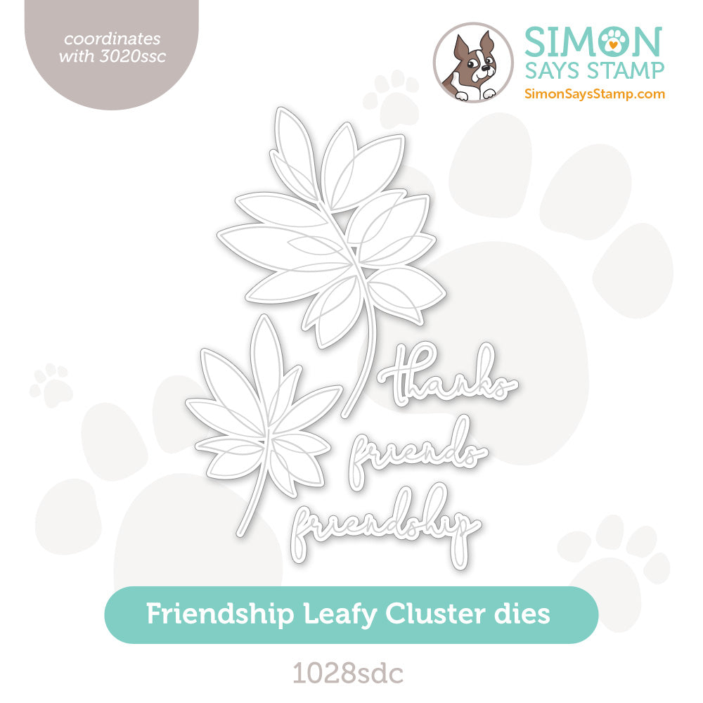 Elevate your paper crafting with the Simon Says Stamp Friendship Leafy Cluster dies. This die set is designed to complement the coordinating Friendship Leafy Cluster stamp set, allowing you to effortlessly cut out the two leafy branches and the three script sentiment words.