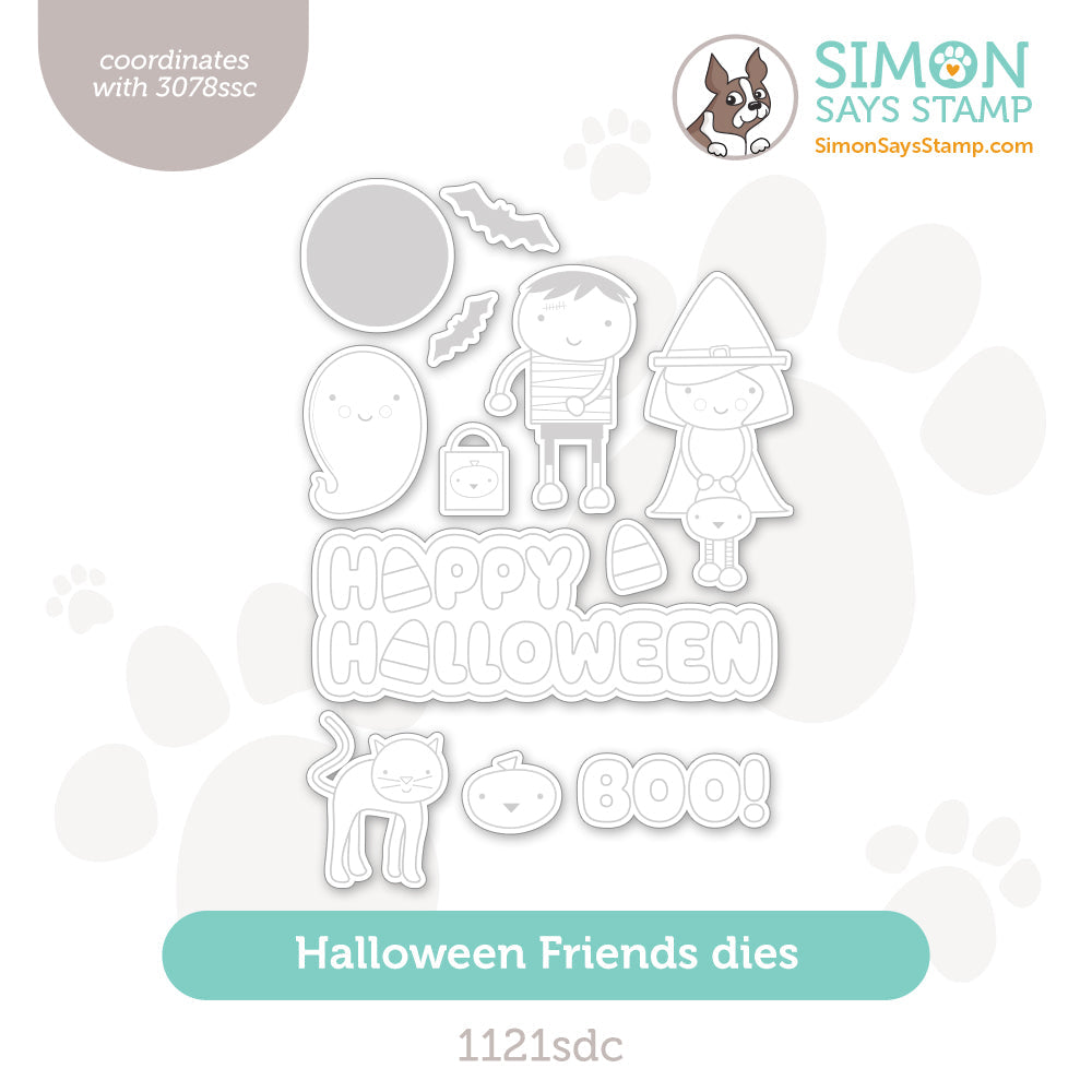 Complete your festive crafting with the Simon Says Stamp Halloween Friends dies. Designed to perfectly match the Halloween Friends stamp set, these dies allow you to effortlessly cut out the two large sentiments and all the charming images, including the trick-or-treaters, ghost, cat, pumpkin, bats, treat bag, moon, and candy corn.