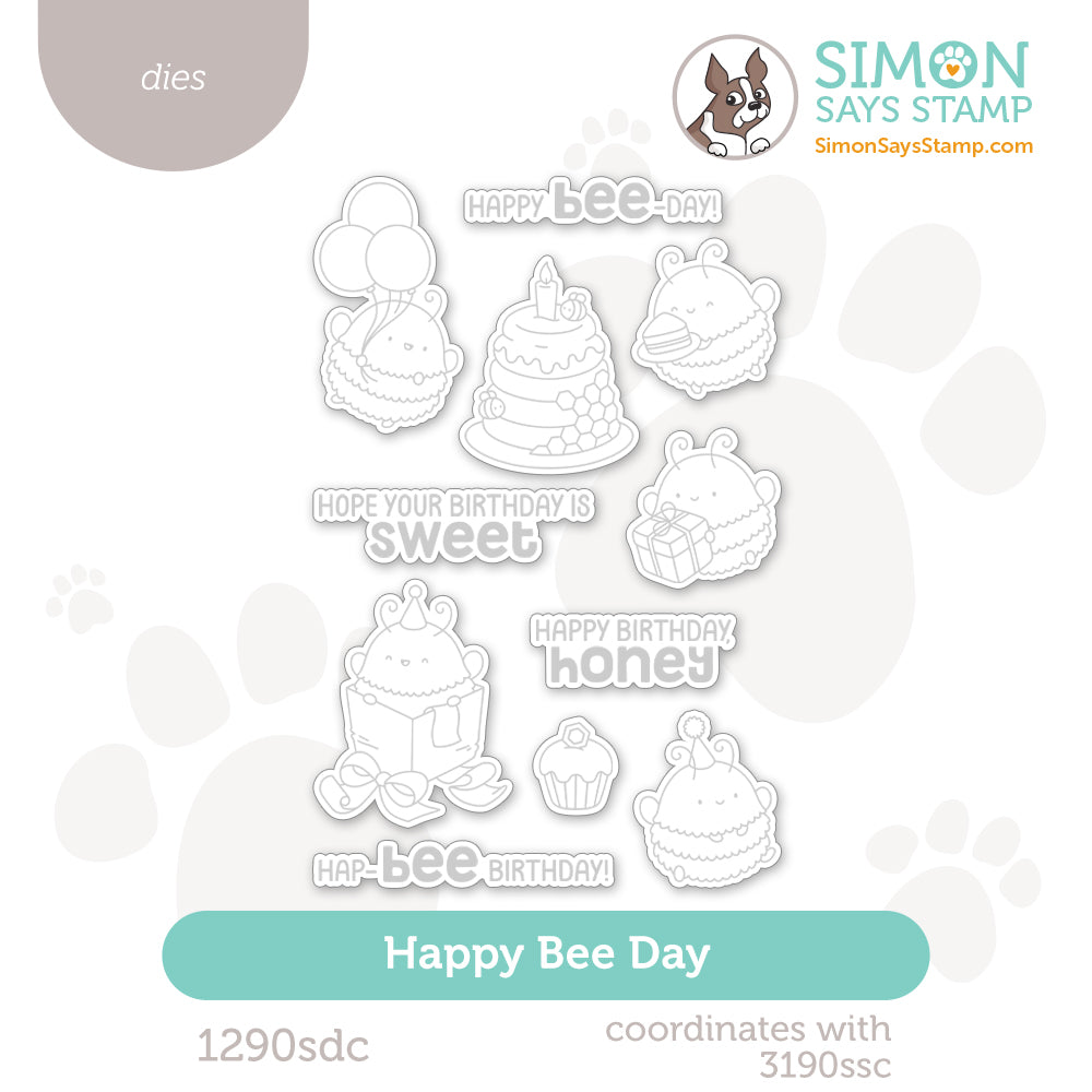 The Simon Says Stamp Happy Bee Day dies are designed to coordinate with the Happy Bee Day stamp set, cutting out all of the cheerful bee images, birthday treats, and punny sentiments.