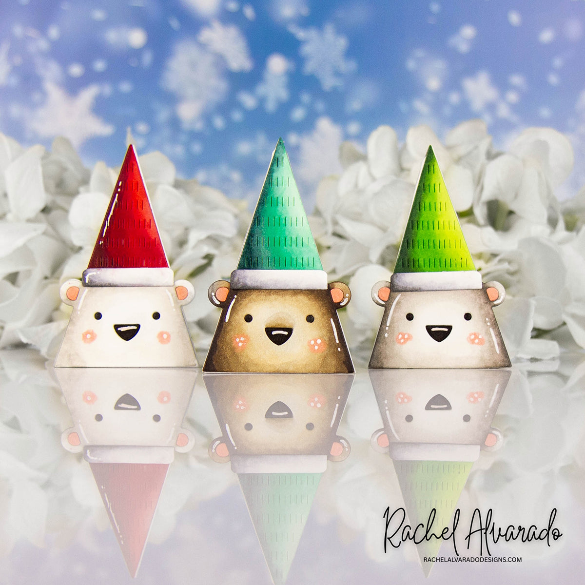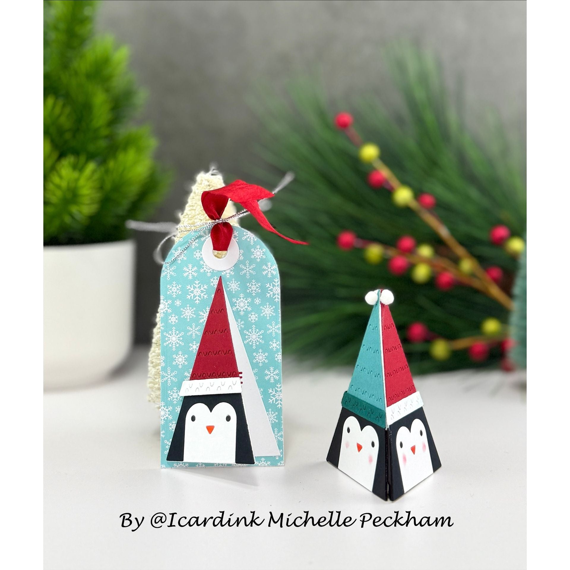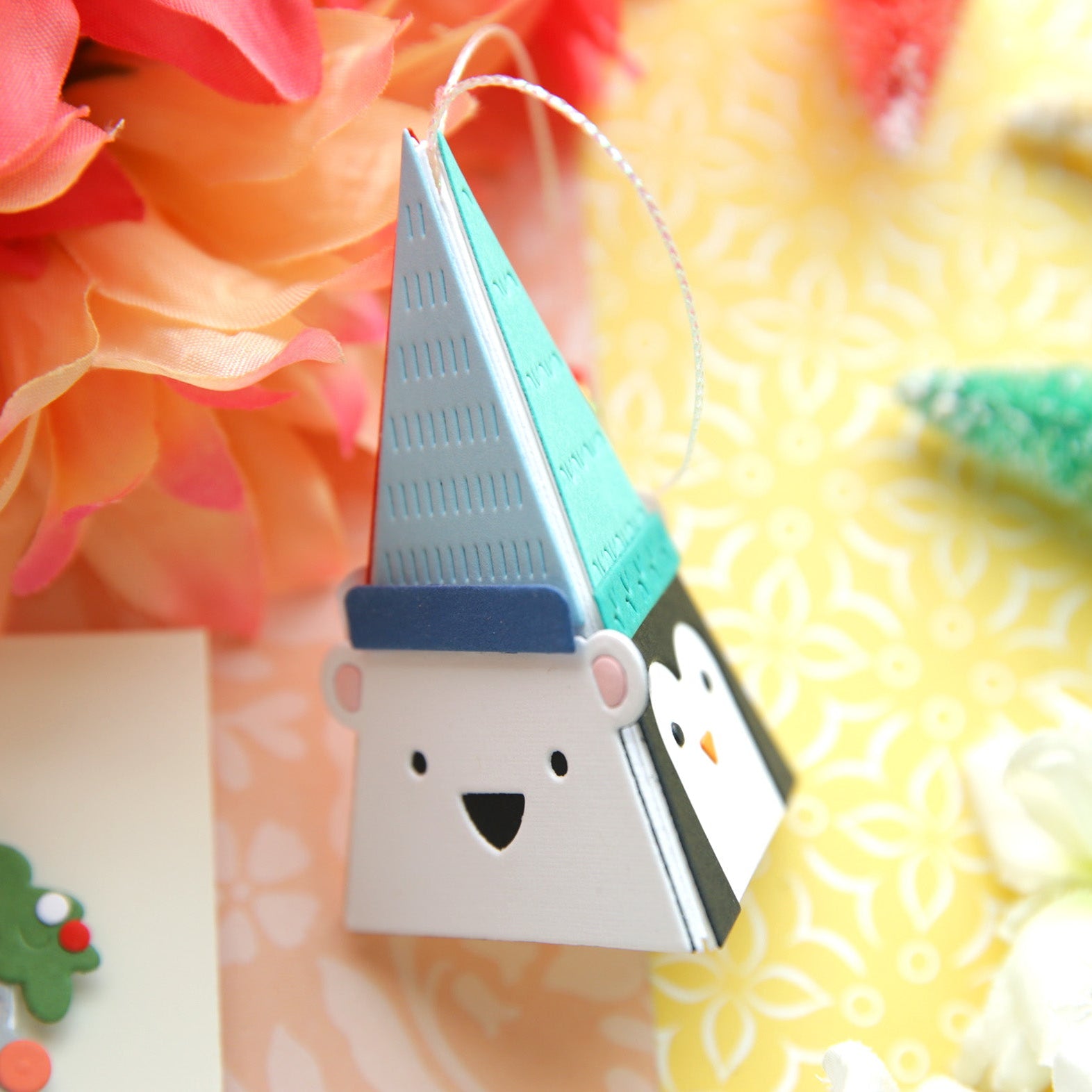 Perfect for creating 3D cards, table décor, or cute holiday scenes, this versatile die set brings interactive charm to your holiday crafting. Cut the tab die 3 times and adhere by the tabs to assemble a 3D shape, and attach a penguin, bear, Santa, or tree to one side or all three. Make multiples for a festive one-of-a-kind centerpiece!