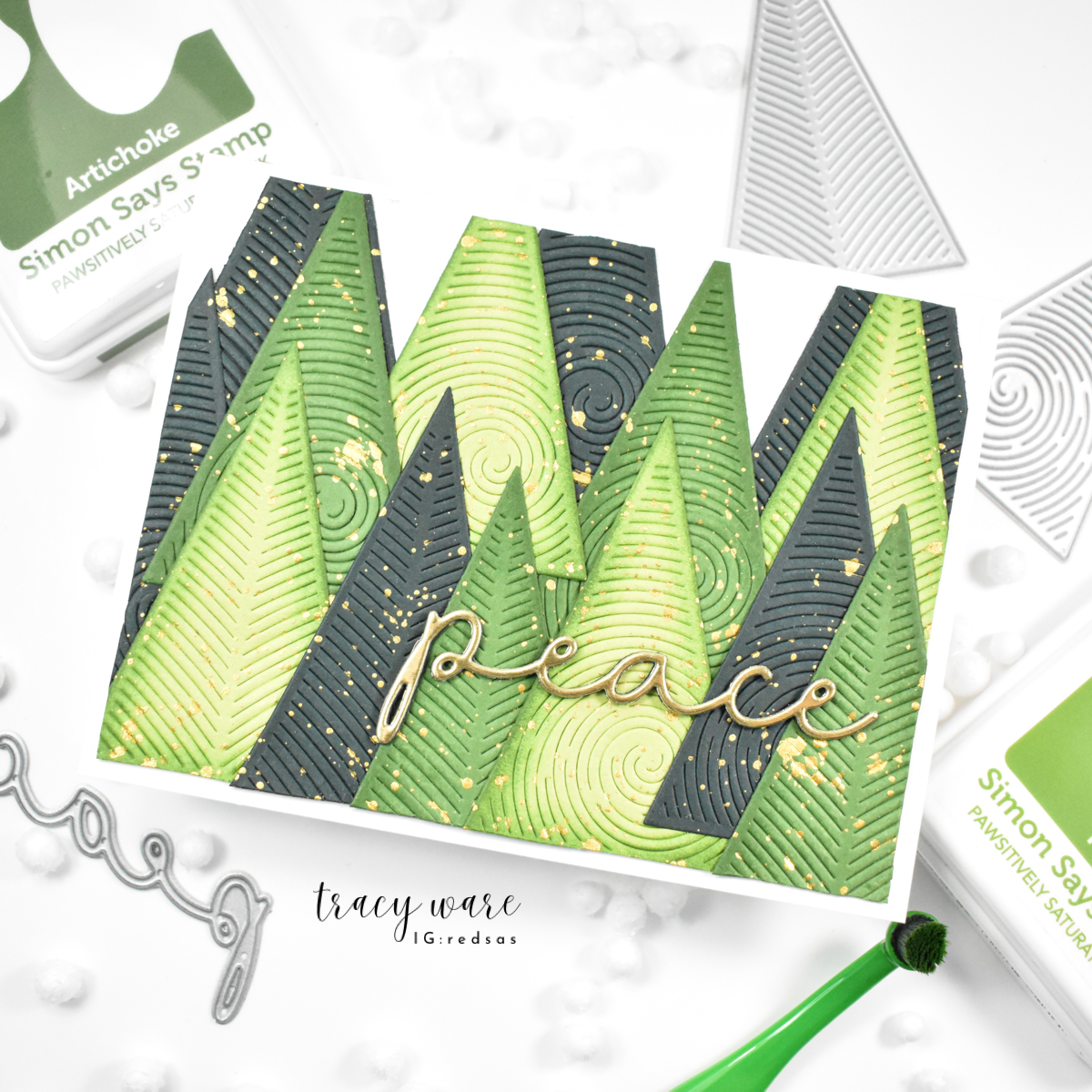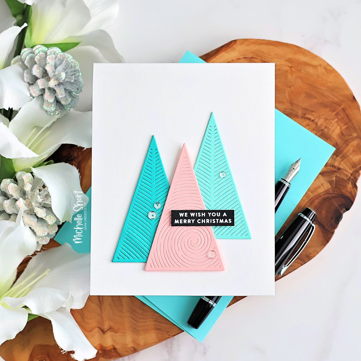 Add a touch of playful geometry to your crafting with the Simon Says Stamp Holiday Triangles bundle. This clever set includes the Triangle Penguin, Triangle Bear, Triangle Santa, and Triangle Whirl Trees as well as the Triangle Tab (a triangle-shaped piece with a side tab that allows you to make them 3D.)