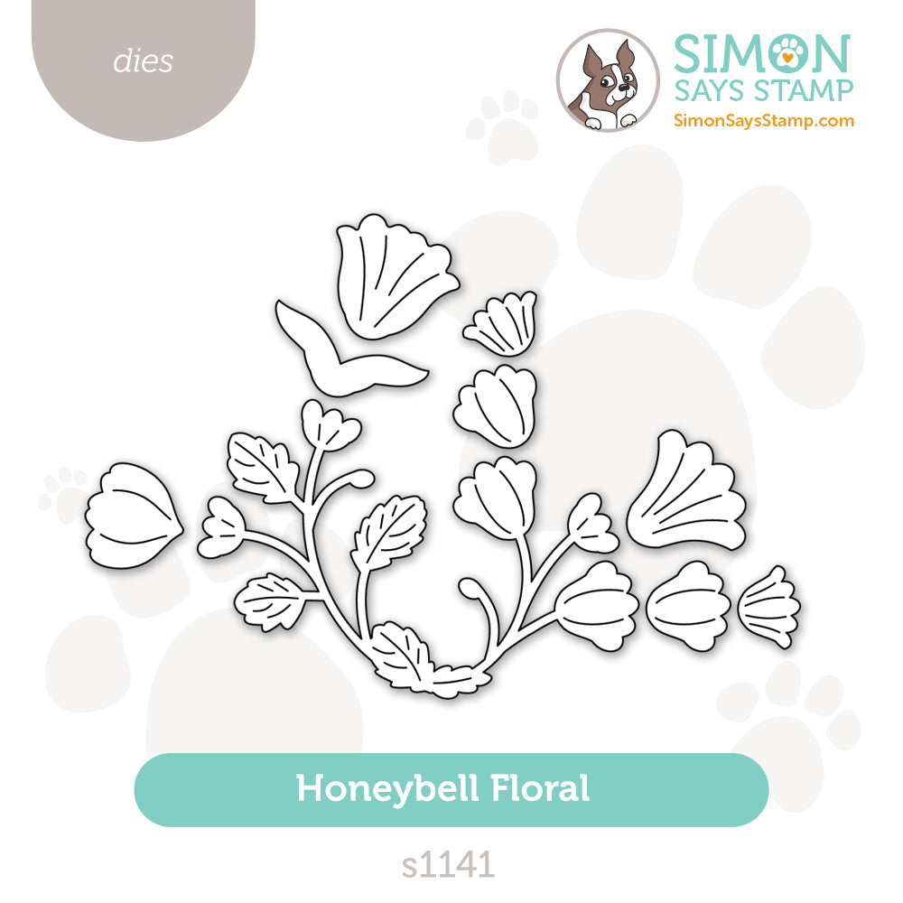 The Simon Says Stamp Honeybell Floral dies cut a graceful, vine-like blooming branch adorned with frilly, cup-shaped flowers. The flowing design creates a natural sense of movement, making it perfect for building elegant botanical accents.