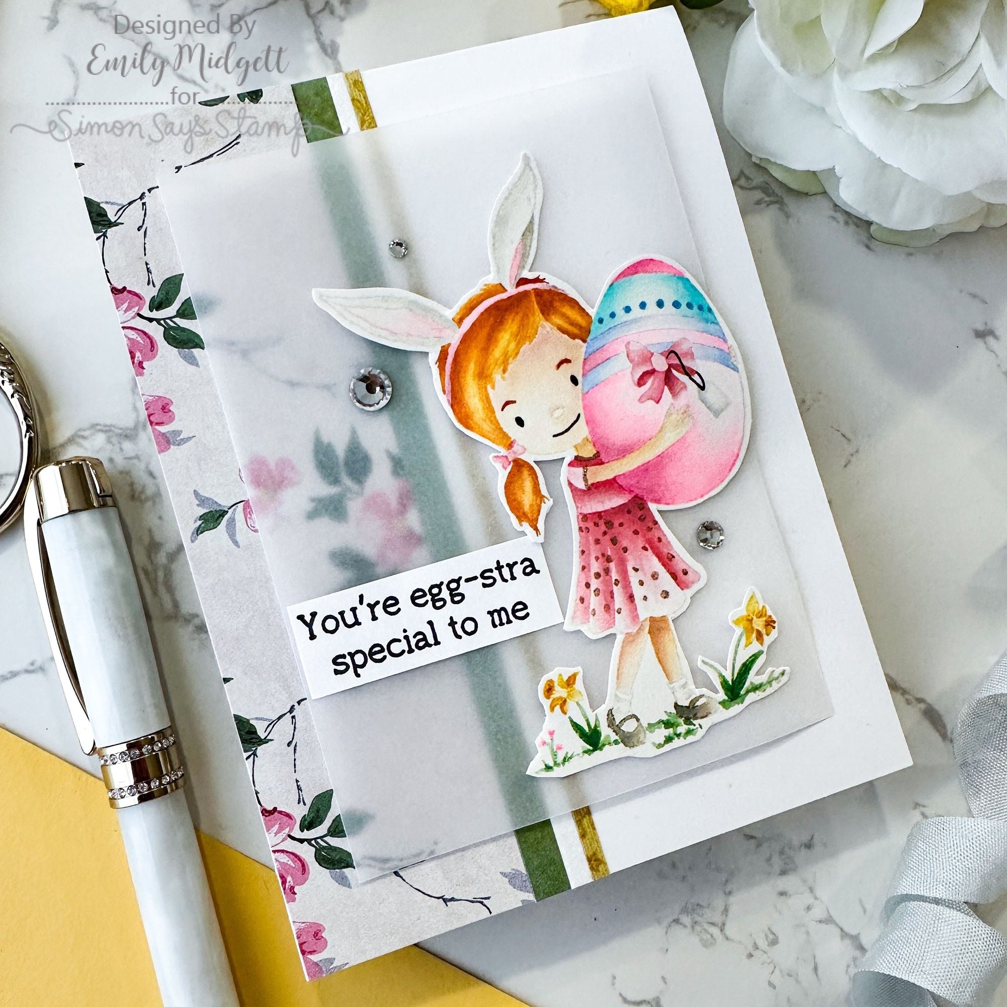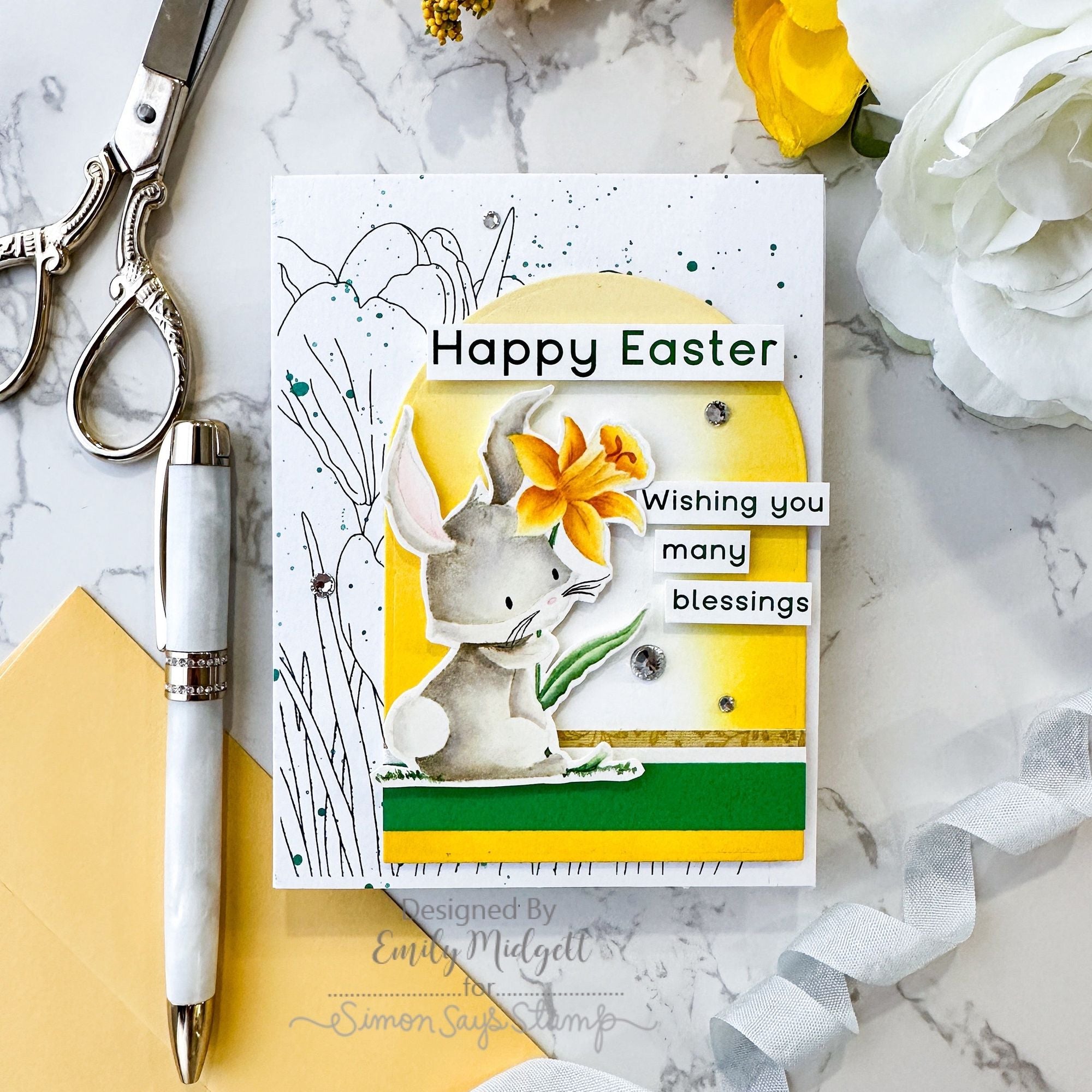 The Simon Says Stamp Hoppy Easter dies effortlessly cut out the charming storybook scenes and larger sentiments featured in the coordinating stamp set (Happy Easter and Hey, Cutie), allowing for precise and intricate crafting with ease.