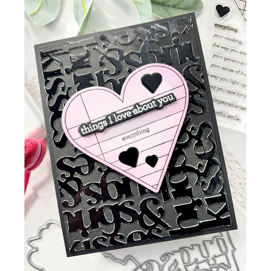 Elevate your crafting projects with the Simon Says Stamp Hugs & Kisses dies. These versatile dies are designed to precisely cut out the sentiment "hugs & kisses" in a beautifully stacked design.