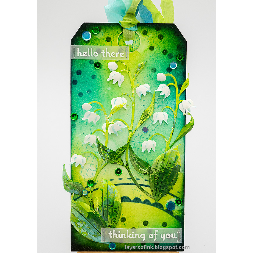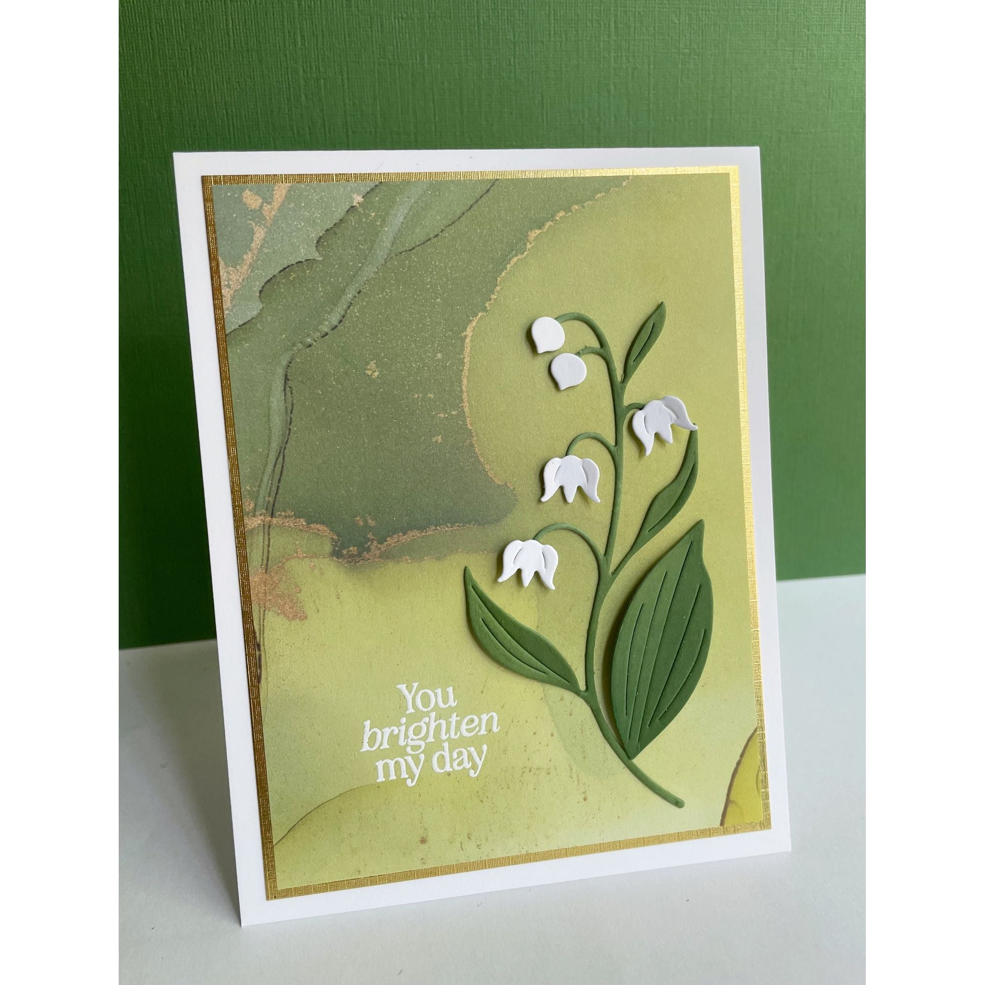 - Includes wafer-thin dies that cut out parts to create a blooming lily of the valley plant.