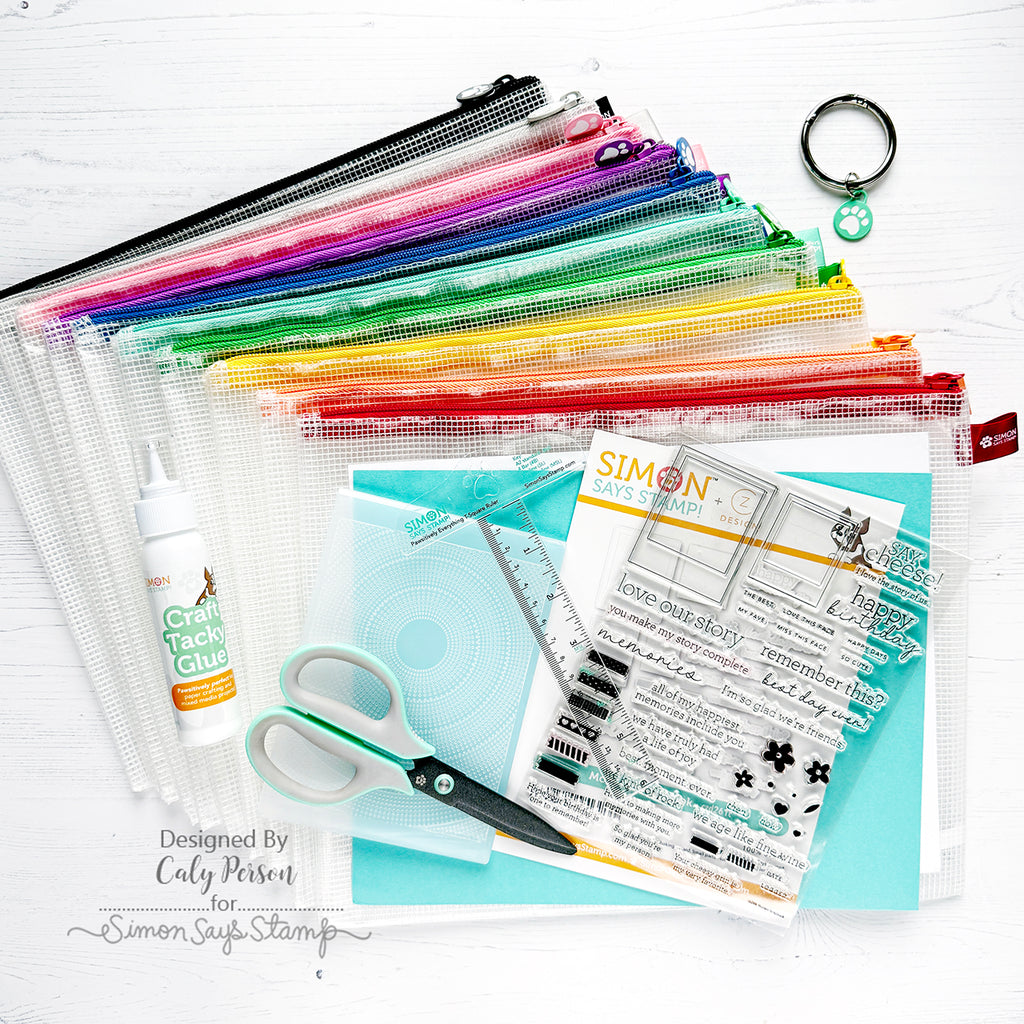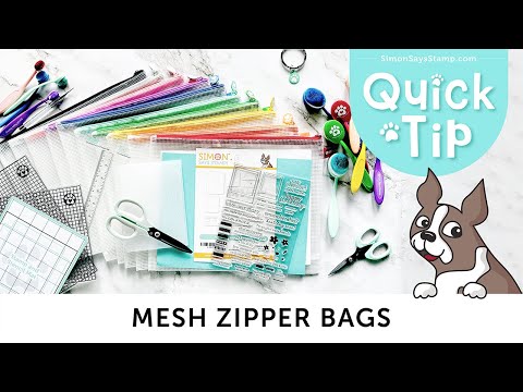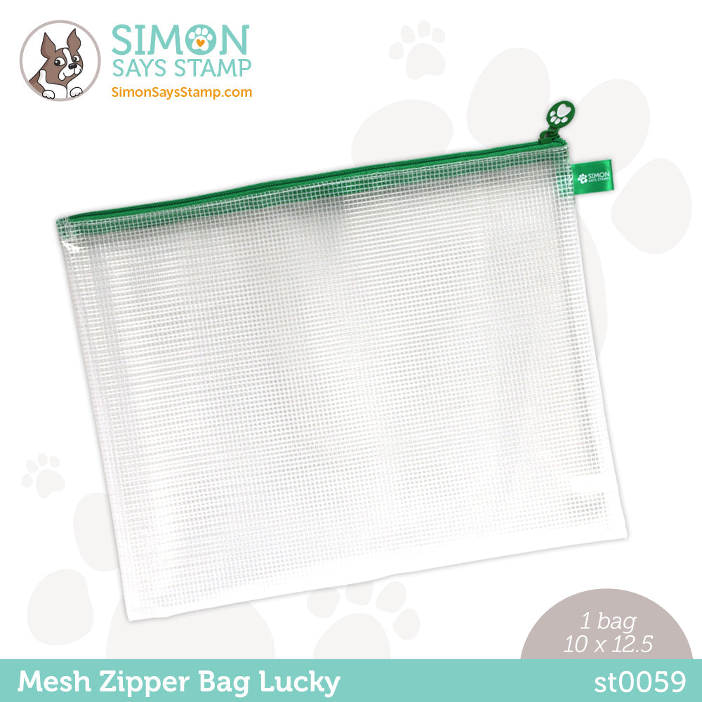 Our Simon Says Stamp Mesh Bags are a pawsitively perfect storage solution for all your crafty supplies! The large 10 x 12.5 inch size allows for full-sized 8.5 x 11 inch paper sheets to fit inside. The flexible makeup of this bag also gives room for bulkier items such as jars or tools. The mesh material has a slick coating, which makes for easy clean-up if you put inky brushes into it. Not just for your craft room, our Mesh Bags are even great for traveling; place your favorite supplies inside and carry them with you for on-the-go crafty time!