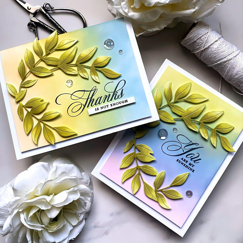 Create lush botanical accents with the Simon Says Stamp Lush Leaves die. This versatile die set features two sizes of leafy branches, perfect for adding natural elegance to your paper crafting projects.