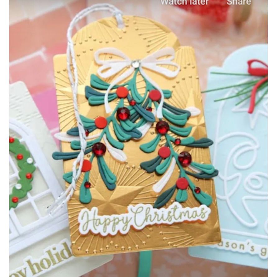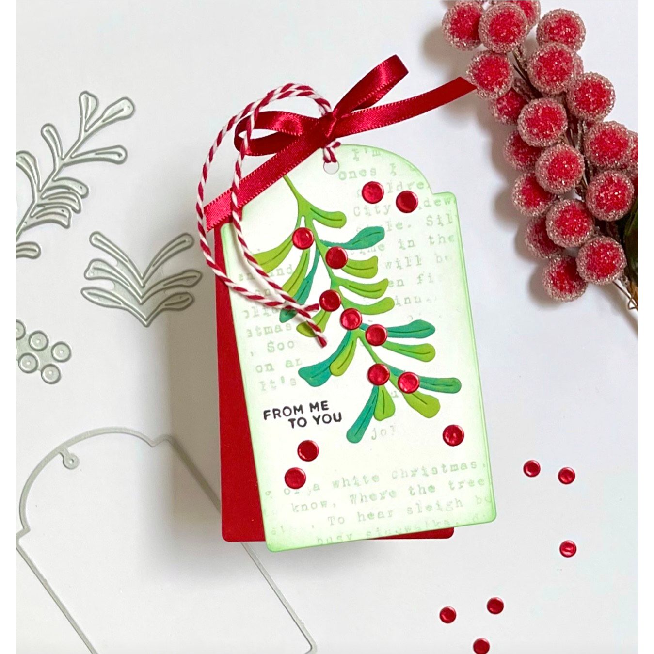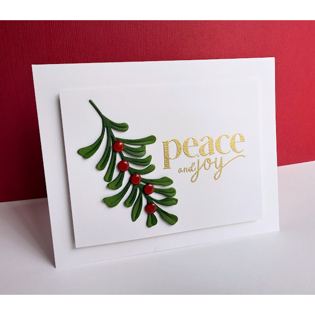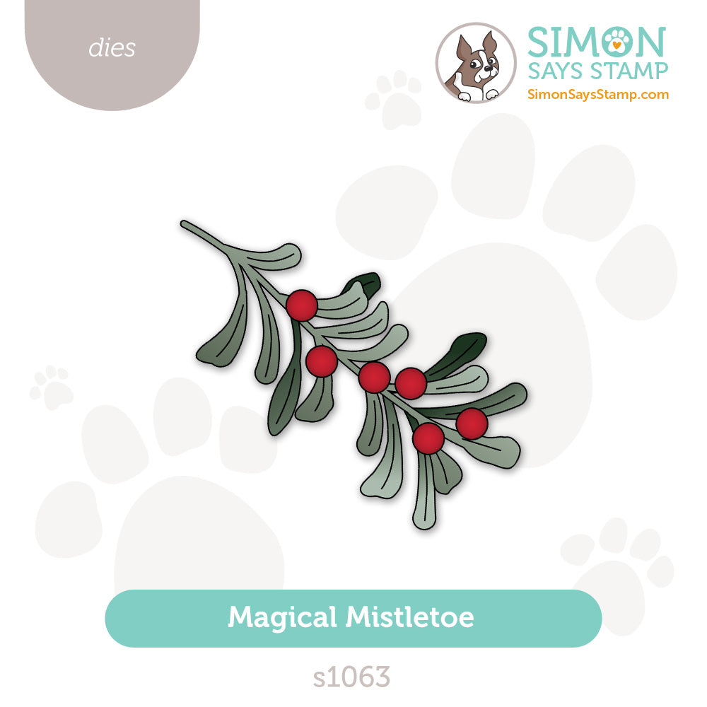 Add a touch of holiday romance to your projects with the Simon Says Stamp Magical Mistletoe dies. This charming set allows you to build a layered mistletoe cluster complete with dimensional leaves and berries for a realistic, festive look.