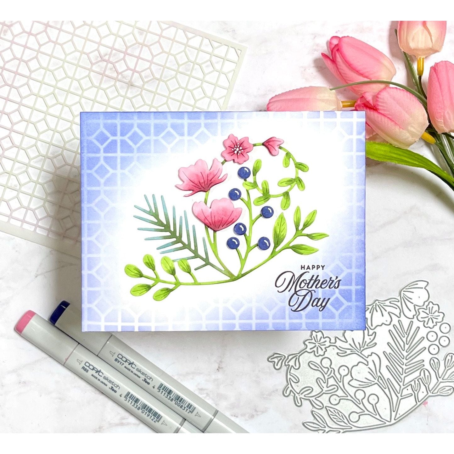 Enhance your floral creations with the Simon Says Stamp Meadow Swag dies. This set cuts out a charming twining branch adorned with an array of delicate greenery and blossoms. Additional dies cut out individual berries and blooms.