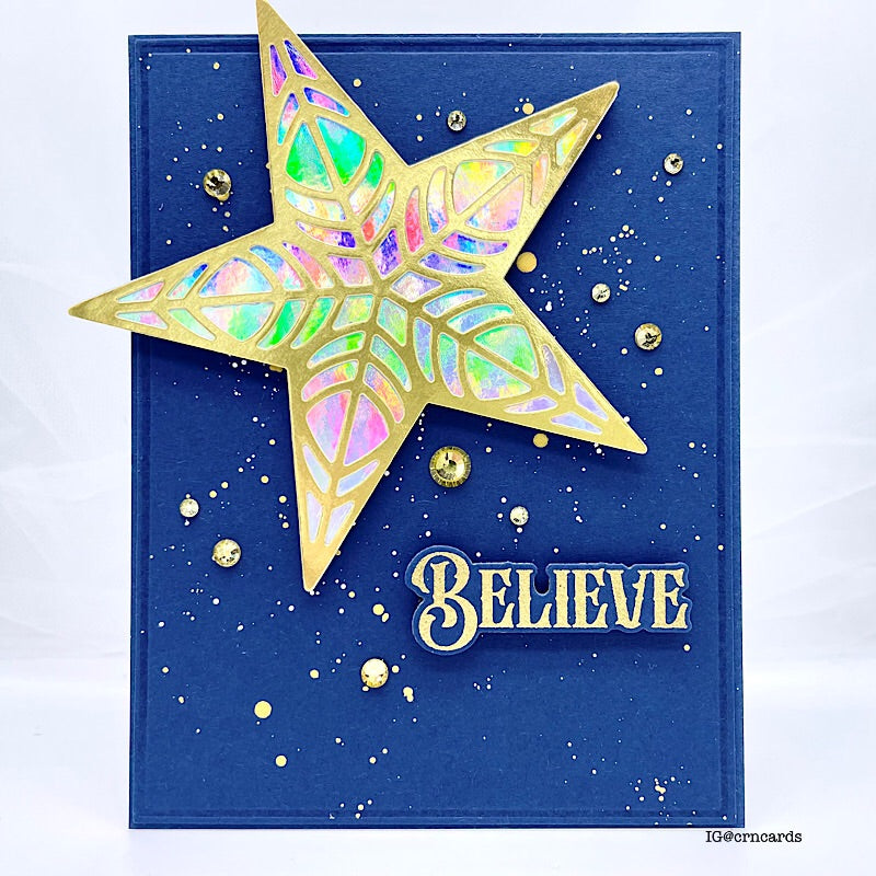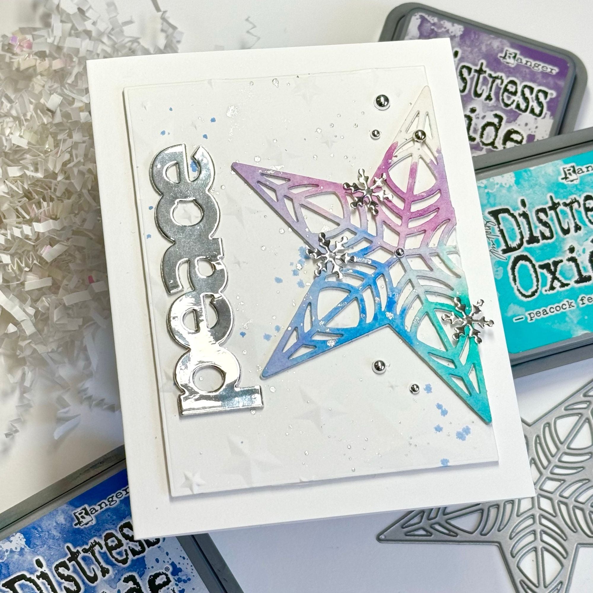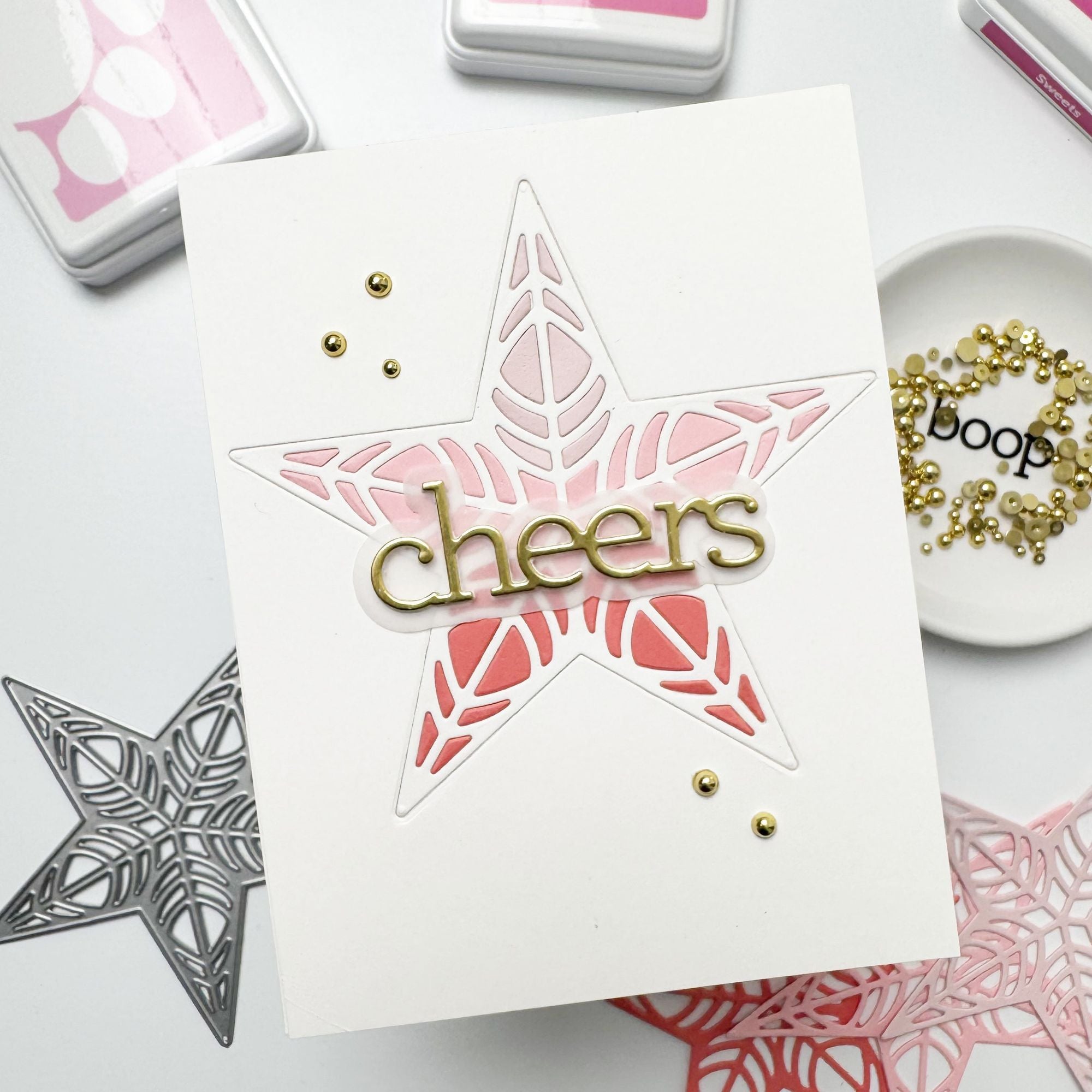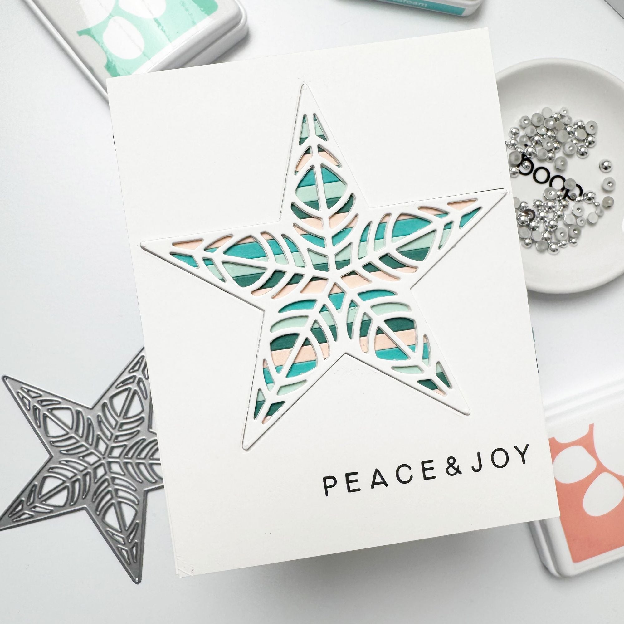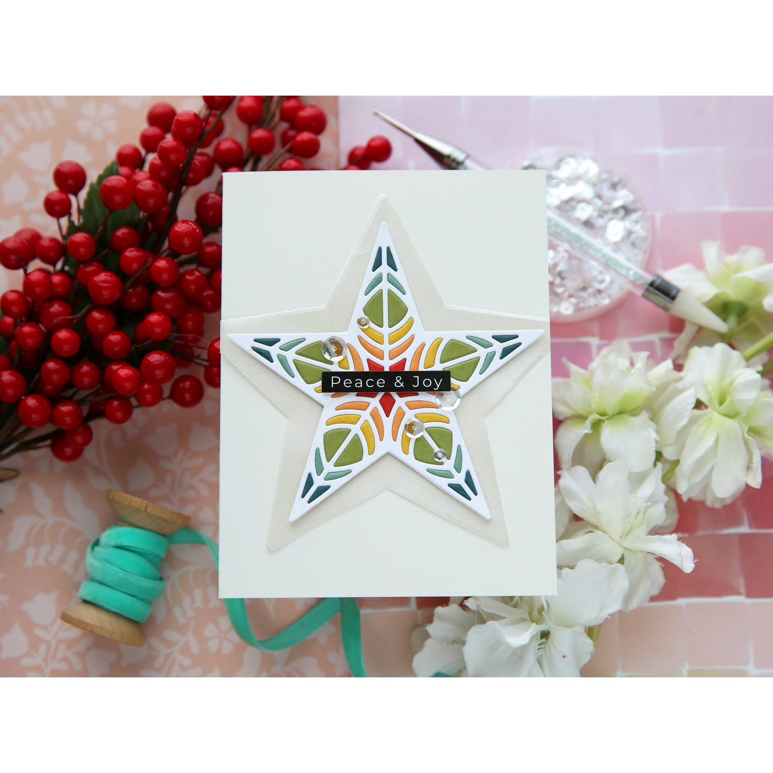 The Simon Says Stamp Ornate Star die creates a stunning, large, faceted 5-point star with intricate detail. Whether you choose to inlay the pieces for a bold and complete look or leave it lacy for an elegant, delicate effect, this die offers versatile design possibilities.
