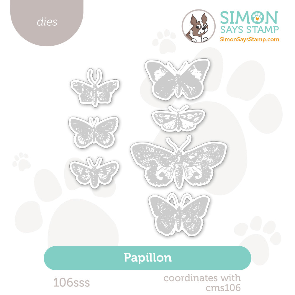 This die set includes the dies to cut out 7 butterflies or moths. The largest die measures approximately 2.375 inches wide by 1.3125 inches tall. The smallest die measures approximately 1.1875 inches wide by 1.9375 inches tall. Works beautifully with the Tim Holtz CMS106 Papillon stamp set.