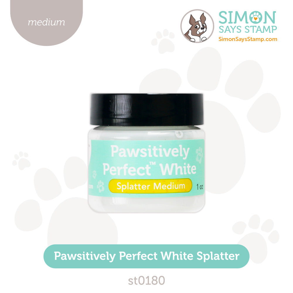 The Simon Says Stamp Pawsitively Perfect Opaque White Splatter Medium makes it easy to add striking texture and detail to your creative projects. Packaged in a handy plastic jar, this ready-to-use, opaque white liquid is designed for effortless splattering—just load a brush and flick to apply.