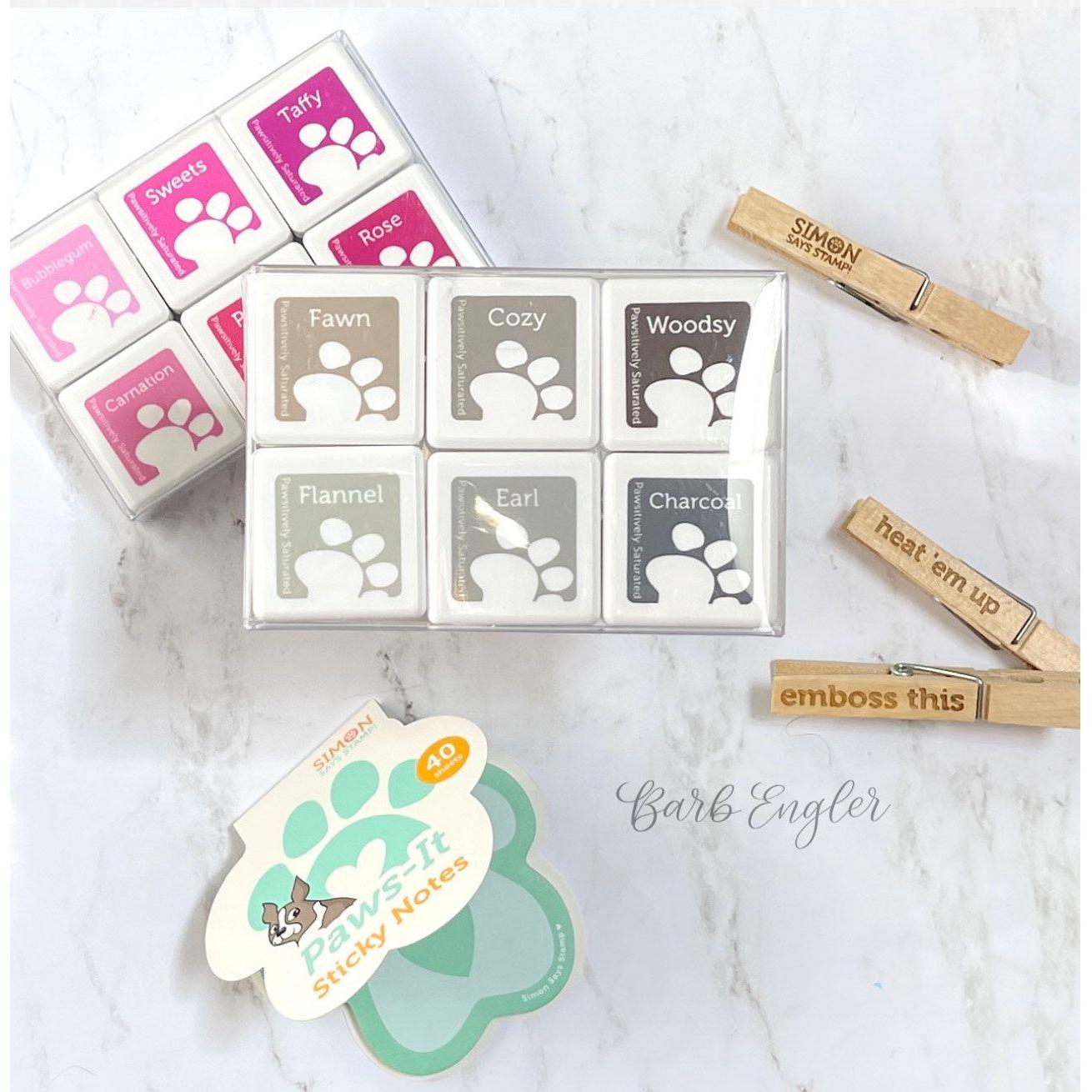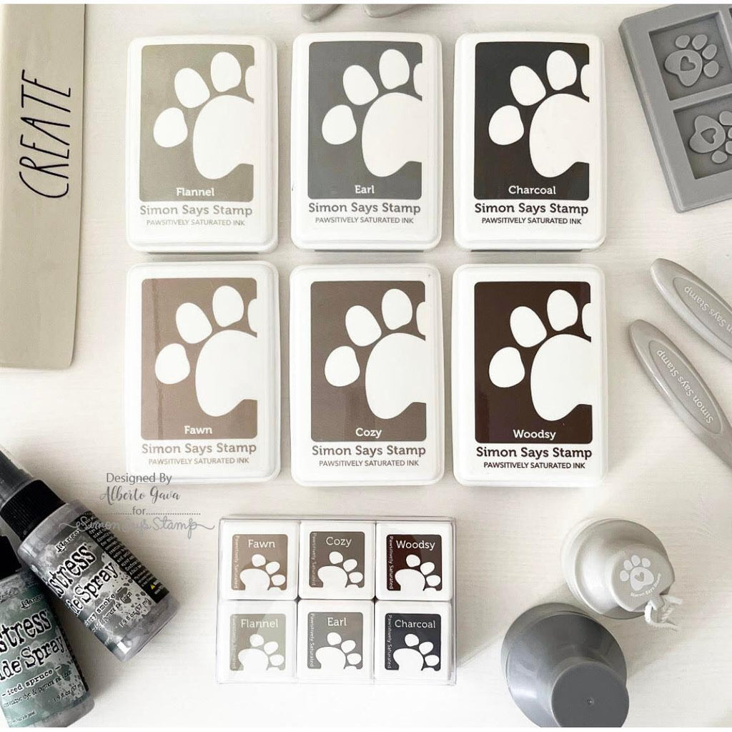 Our popular Simon Says Stamp Pawsitively Saturated Ink is now available in cube form! The versatile Gray Skies 6-pack features dye ink cubes in the gray/neutral color palette that can be used for a wide variety of techniques and projects.