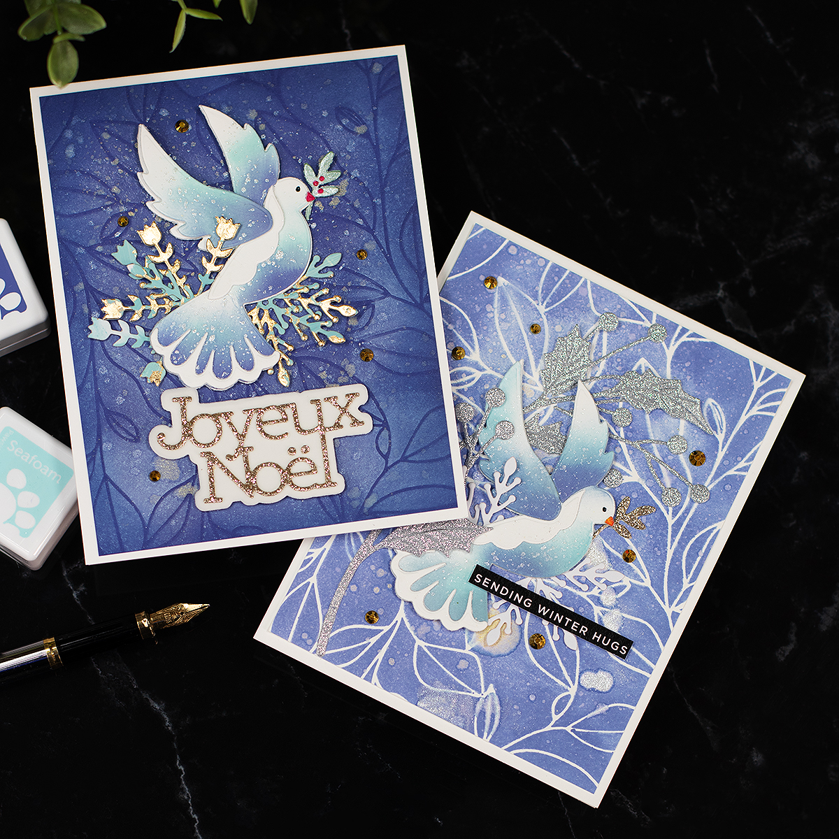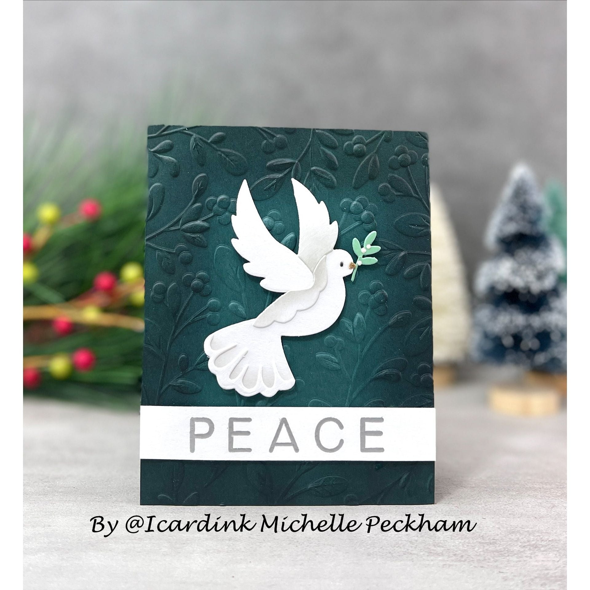 The Simon Says Stamp Peaceful Dove dies are perfect for creating a beautiful, dimensional bird. This set includes a dove shape along with separate pieces for the wings, tail, and feathers, allowing you to layer and add depth. Additional details, such as a greenery branch, berries, an eye, and a beak, complete the elegant design.
