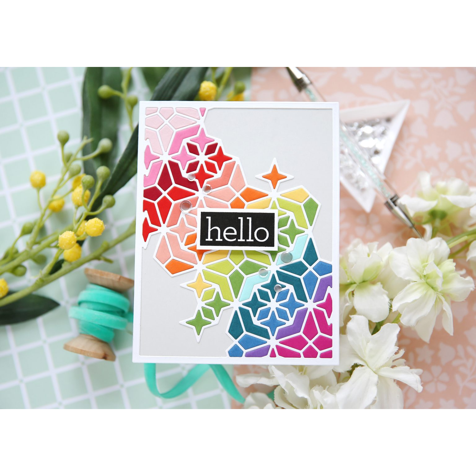 Enhance your crafting with the Simon Says Stamp Pointed Star Plate die. This innovative die effortlessly cuts a frame featuring a mesmerizing fractal star pattern, resembling a modern mosaic design.